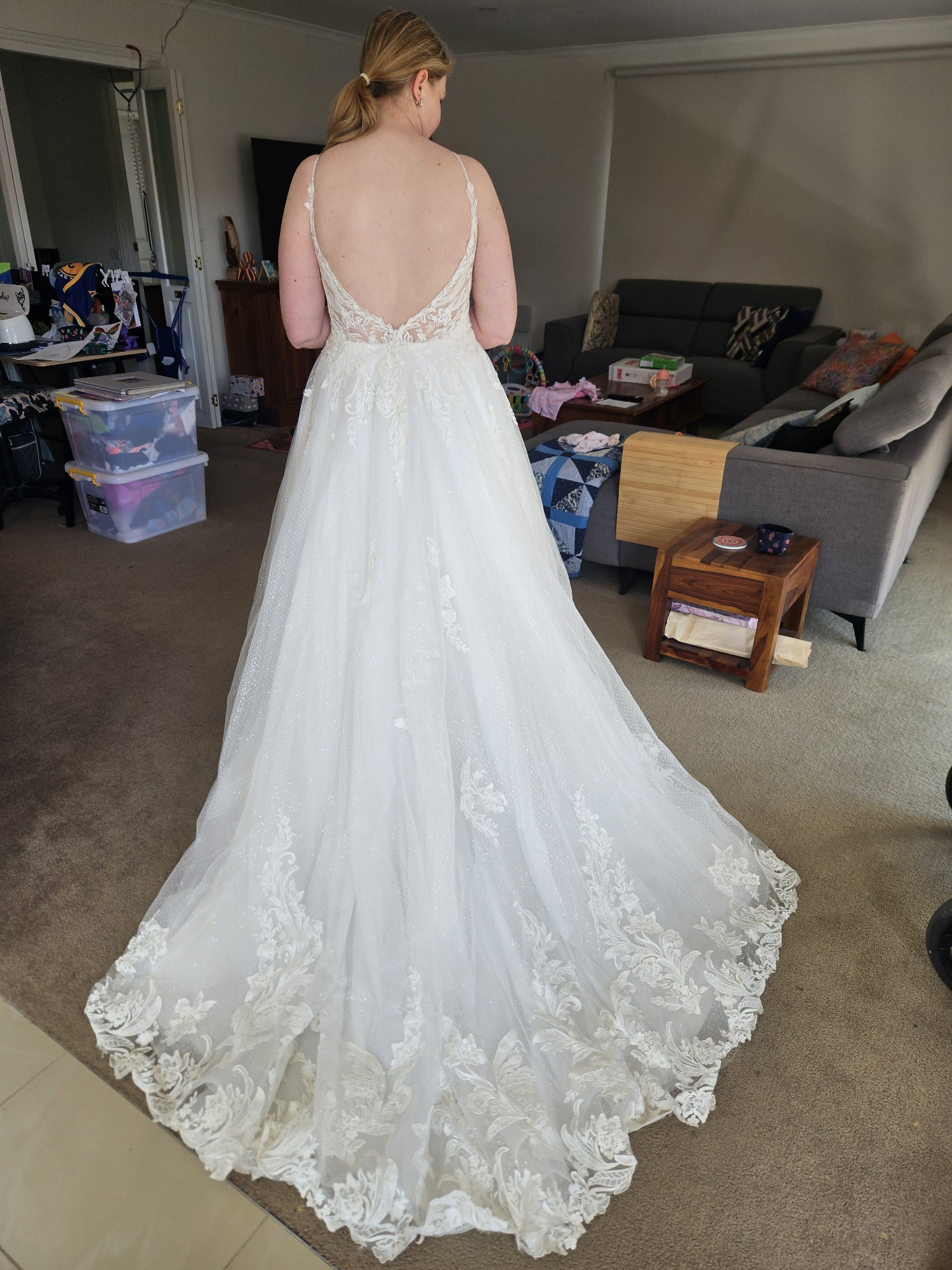 Professionally cleaned and preserved, this size 14 gown is ready for its next chapter. It carries so many wonderful memories, and I’m eager to pass it on to another bride who will create her own unforgettable moments. Whether you envision a romantic garden wedding or a grand celebration, this dress is bound to make your dreams come true.