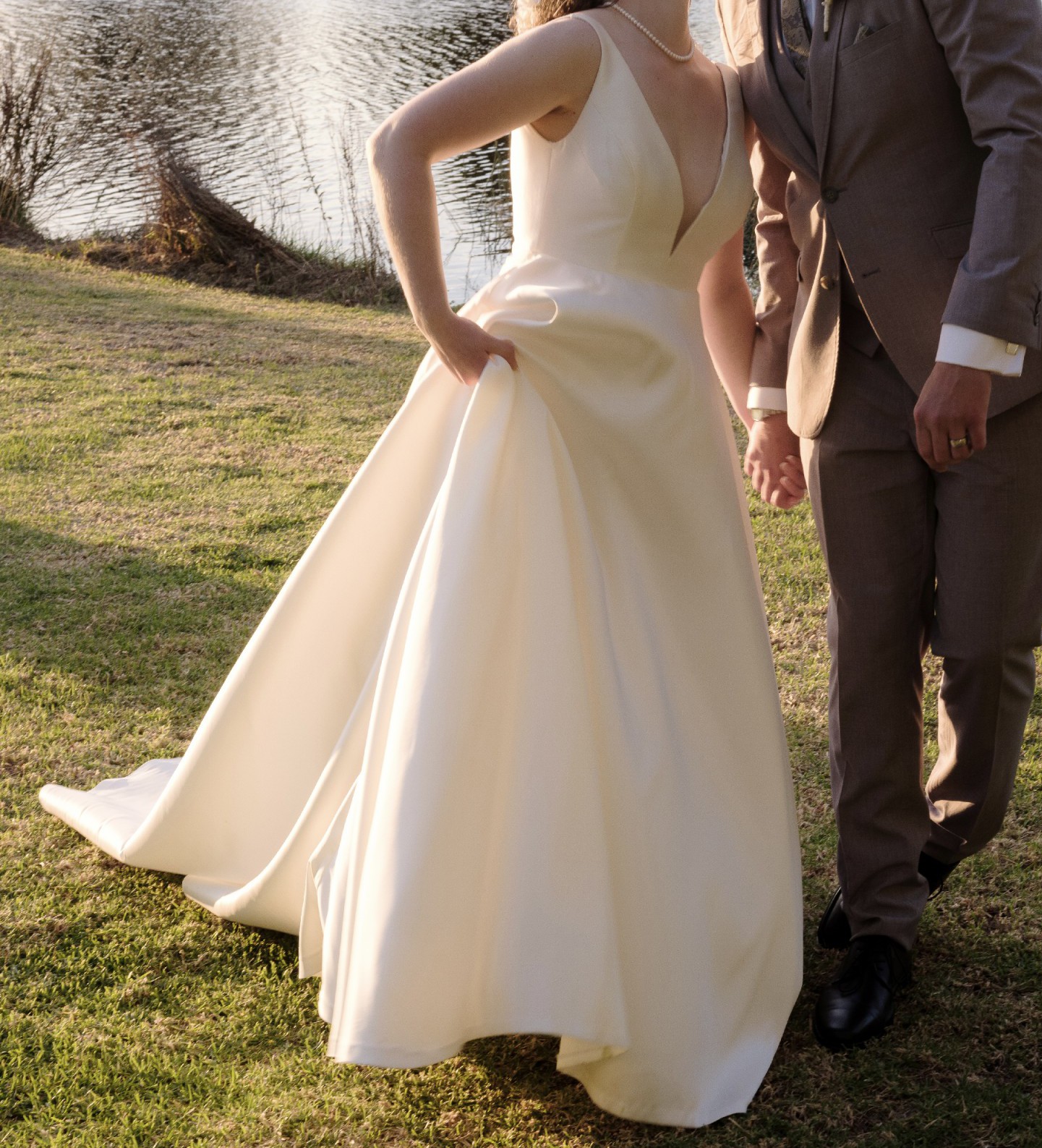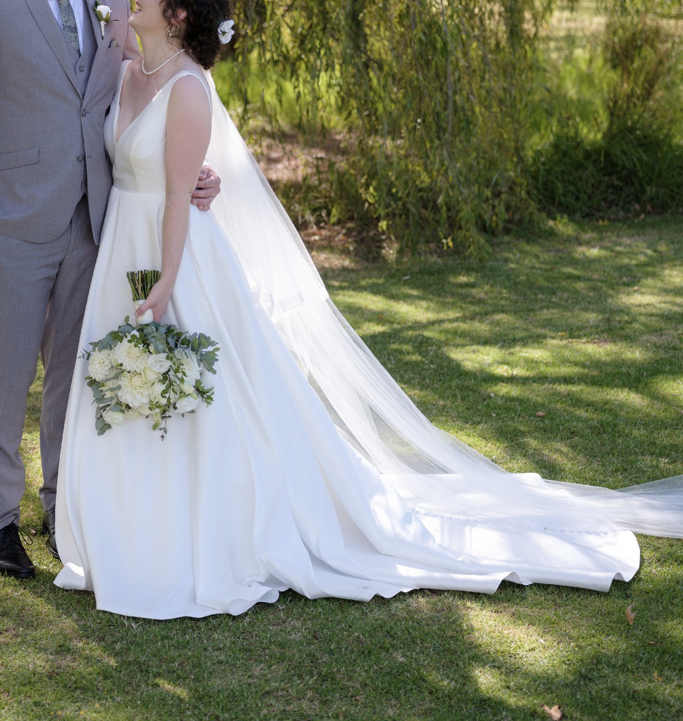 I would definitely recommend the next bride that owns this dress also hire/buy a hoop to really accentuate the fullness of the skirt.