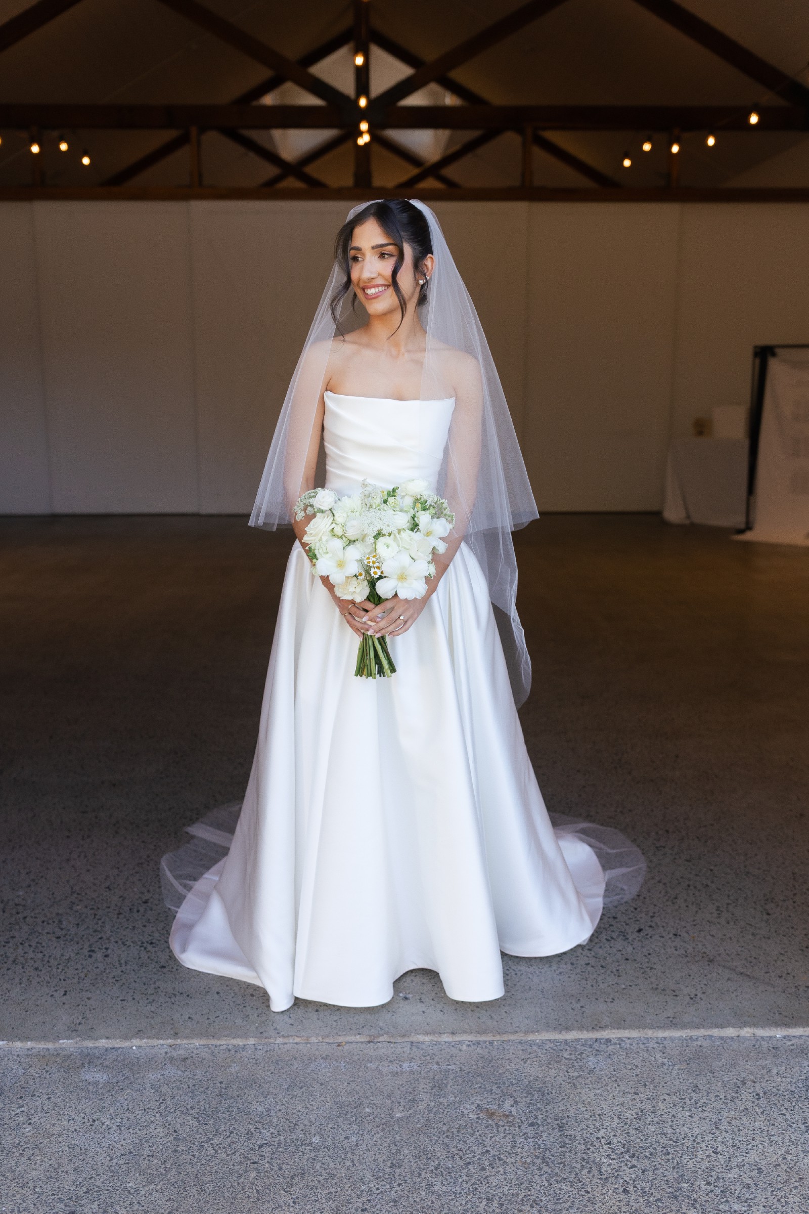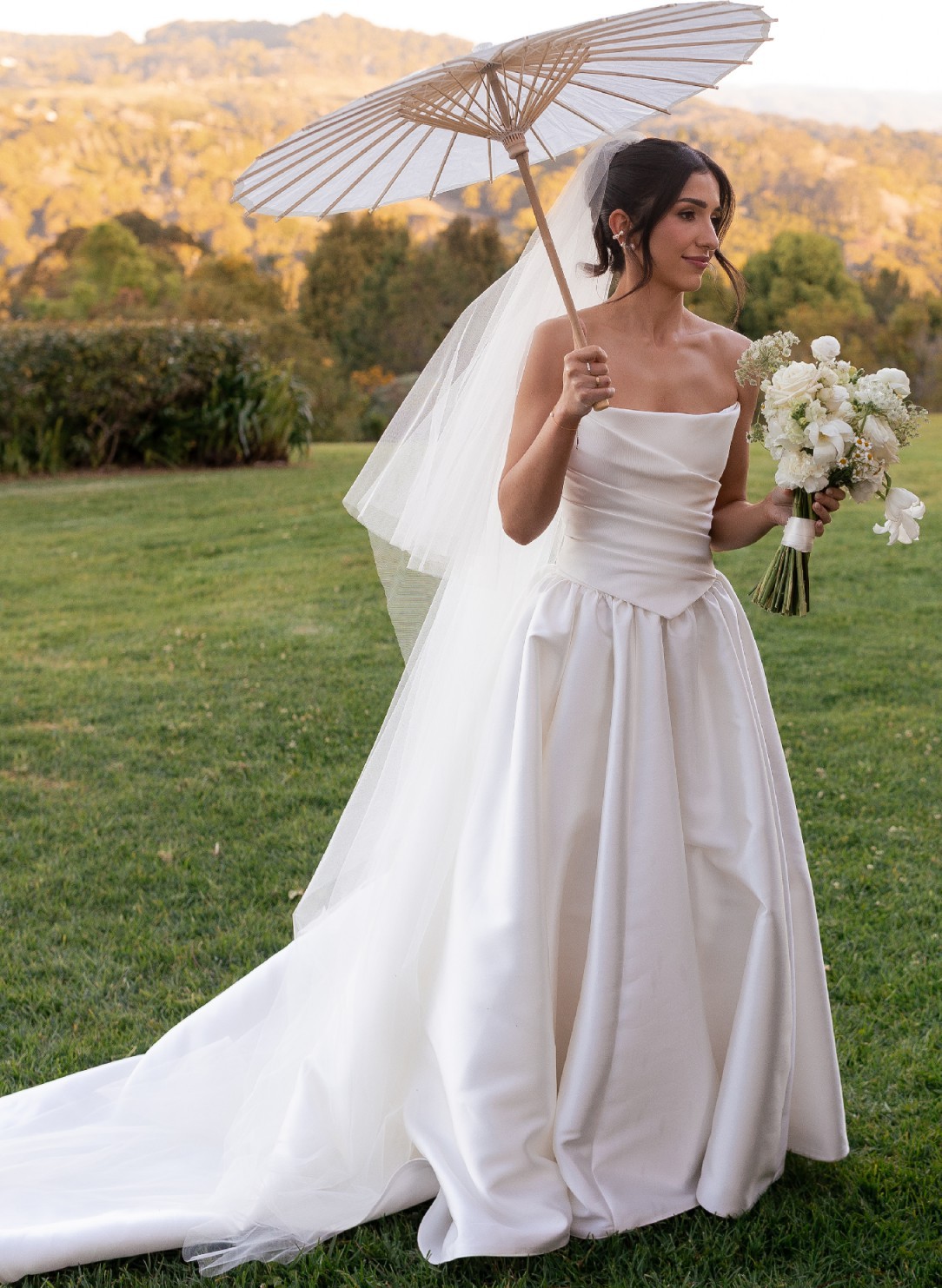 Crafted in a classic white, this floor-length gown is the epitome of bridal beauty. Every detail, from the soft flow of the skirt to the delicate features, speaks to the artistry of the label. To top it all off, I am including a beautiful veil that complements the dress perfectly, enhancing its ethereal quality as you walk down the aisle.