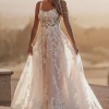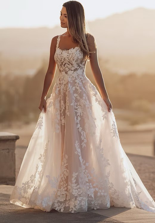 The Allure A1108 elegant wedding gown strikes a perfect balance of modest charm and modern style, creating a breathtaking, timeless look for your wedding day. The dreamiest lace flowers, softened by a subtly scooped square neckline, are embellished with pearlescent beading, shimmering sequins and beadwork. Flowy, natural, and graceful, every detail of this gown is designed to make you feel like a goddess on your big day.