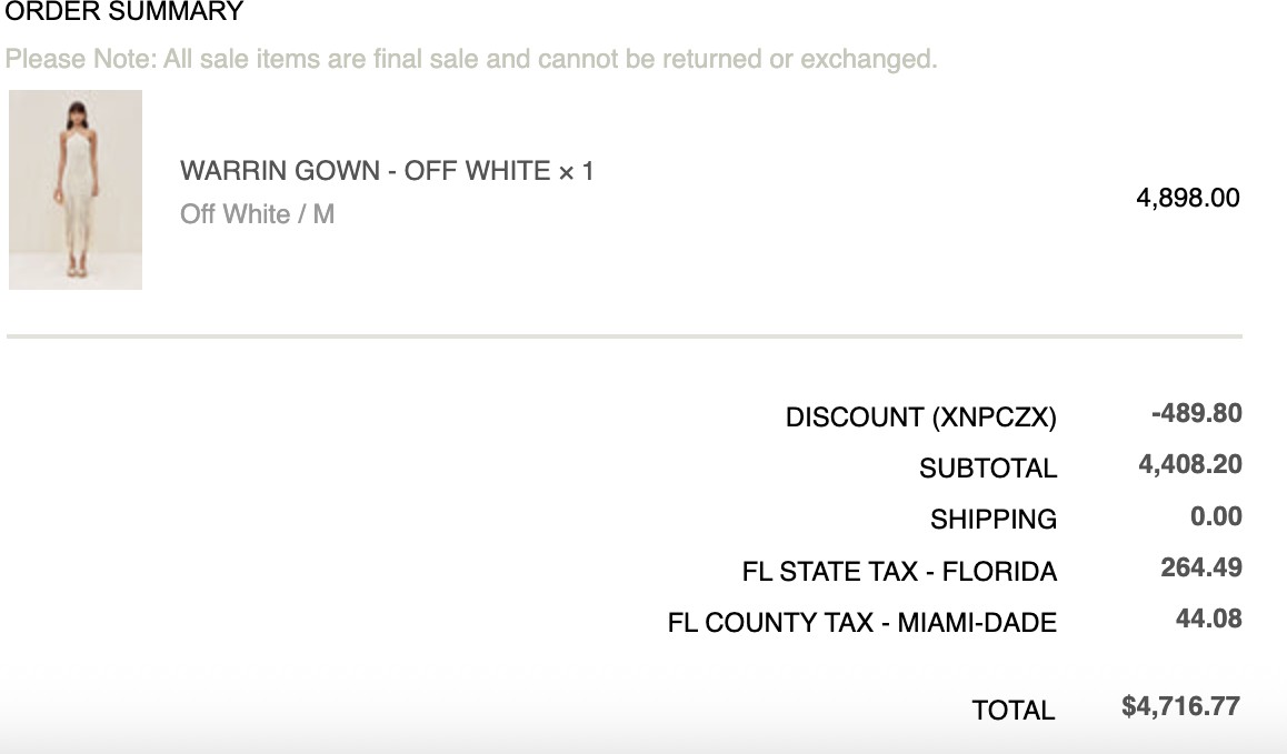 -Dress was purchased online from Cult Gaia US website (screenshot of email with order confirmation /invoice uploaded to photos)