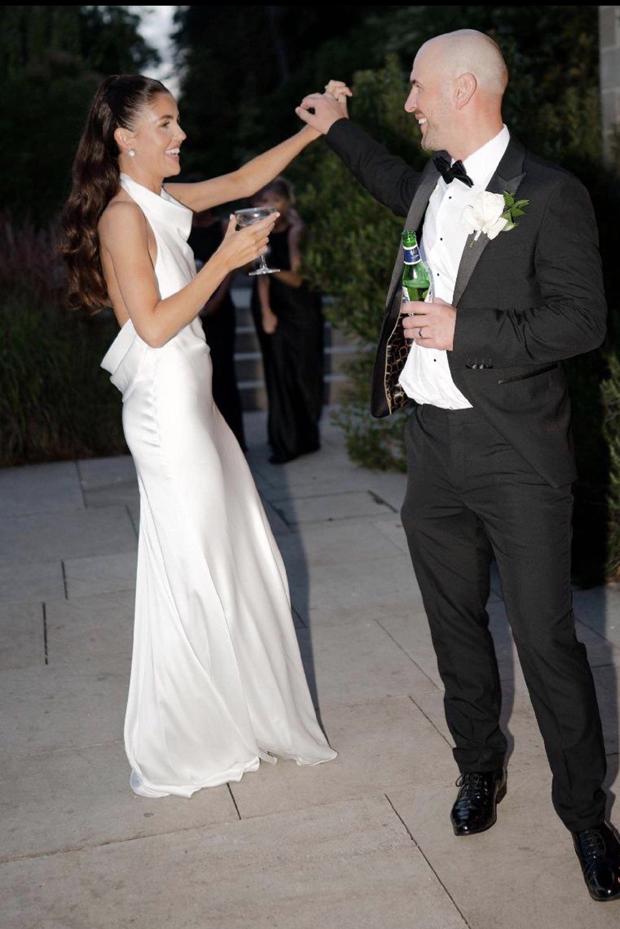This ivory satin dress was made from a small company, but don’t let that fool you! The dress is beautifully made, with a gorgeous weight to the fabric that feels expensive and comfortable. It drapes off of the body to accentuate your curves.