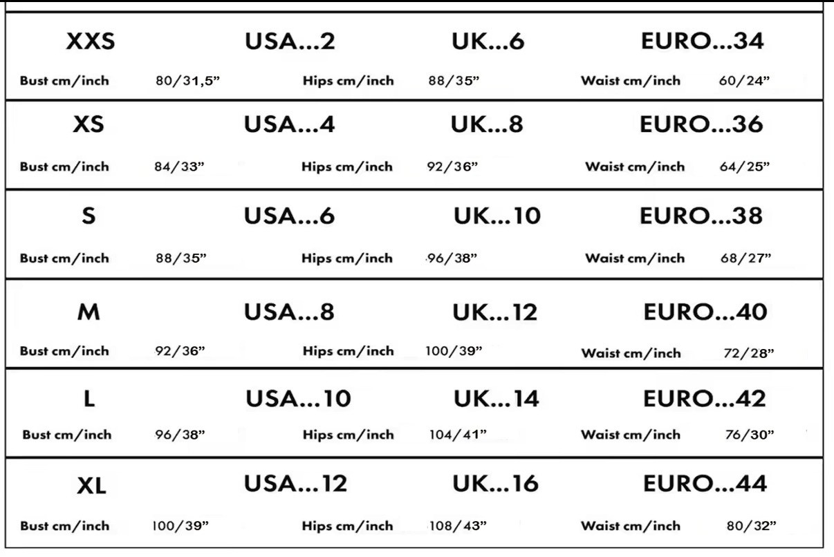 The size guide is straight off of their website.