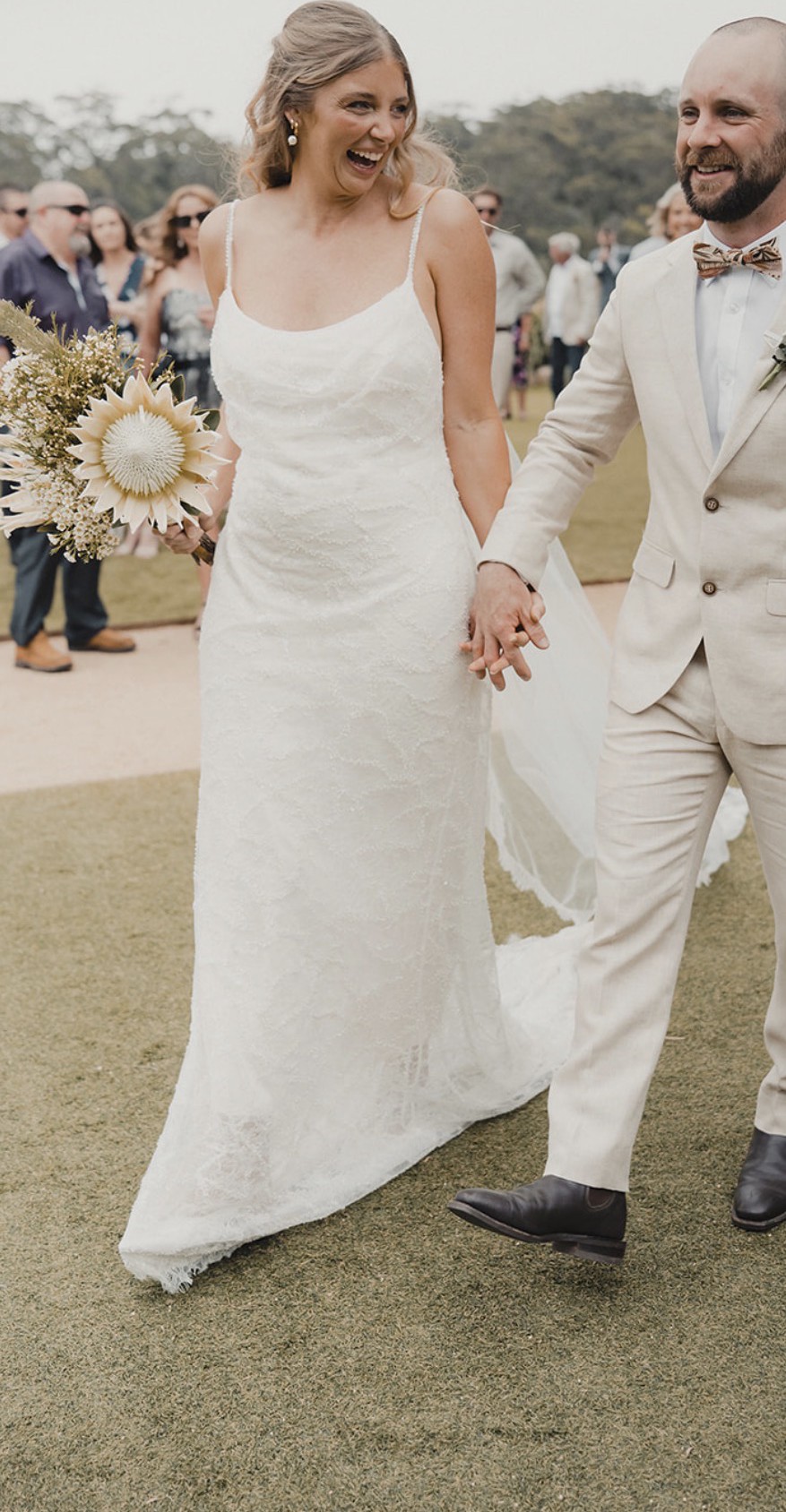 - Champagne silk slip sewn in only to the top of the dress, very easy to unpick if you didn’t want it or wished to change it
