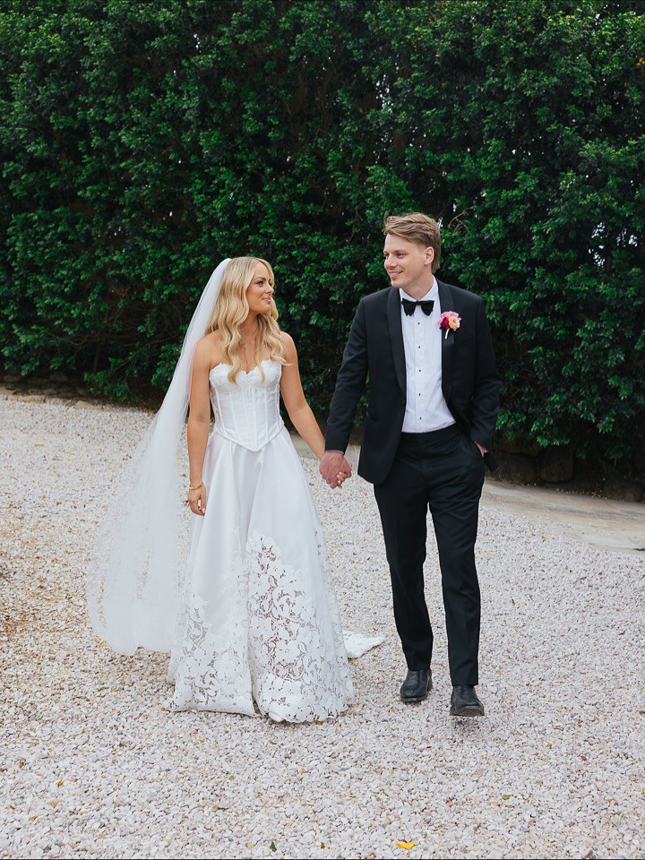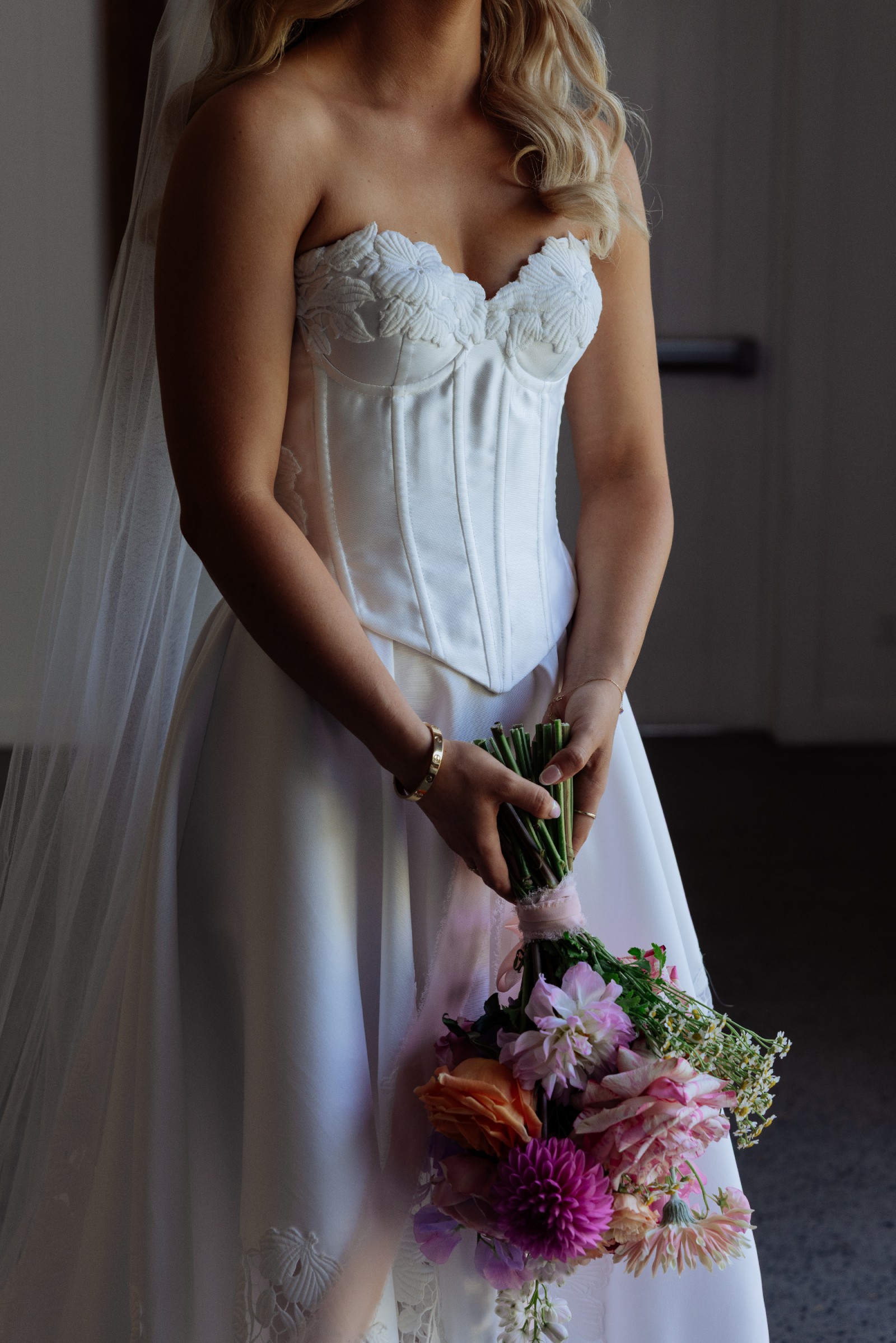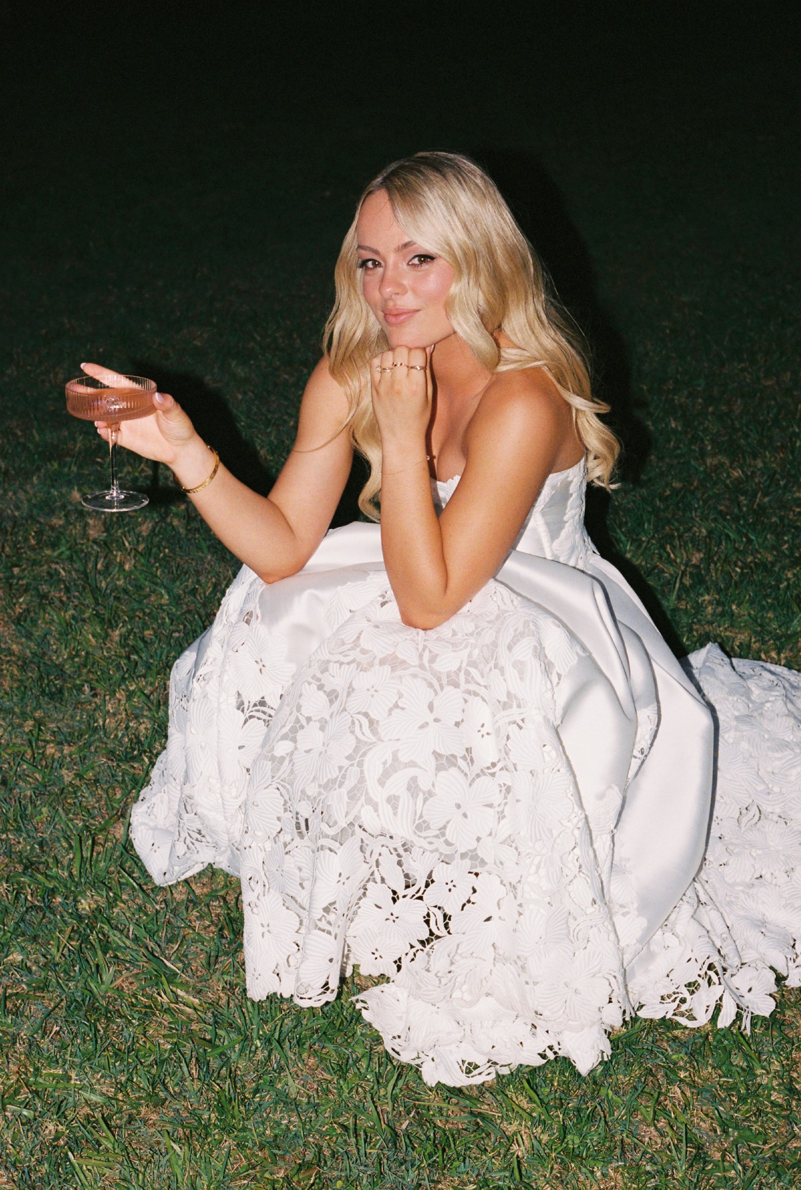 Details from designer - Romance radiates with Vesper’s flattering boned bodice, natural white Mikado and hand-appliqué guipure lace, culminating in a dramatic silhouette.