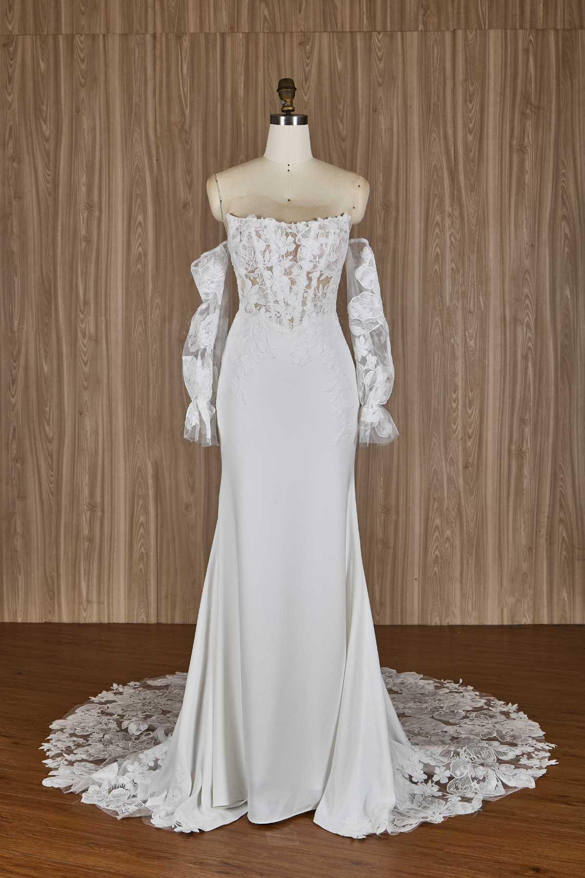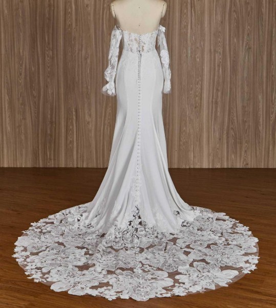 * Neckline: Square neckline with elegant off-the-shoulder long sleeves (optional)