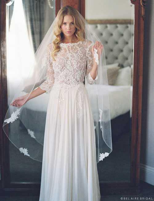 Perfect for a bride looking for a sophisticated, timeless, unique bridal look with romantic lace details and a matching veil.