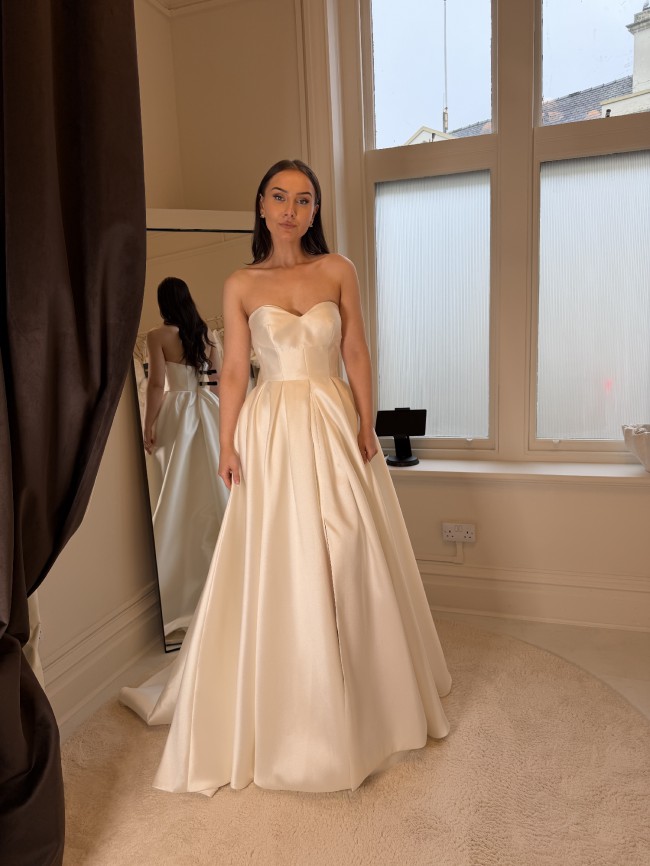 This can be taken out by 1 dress size and taken in by two dress sizes - we work in cm's and not inches. We also have an in house seamstress so can advise on any alterations you plan to make first hand. Please provide accurate measurements as all dresses are non refundable. As the new season approaches we are making space for new dresses. If you have any questions at all please contact the bridal studio direct or send us a message.