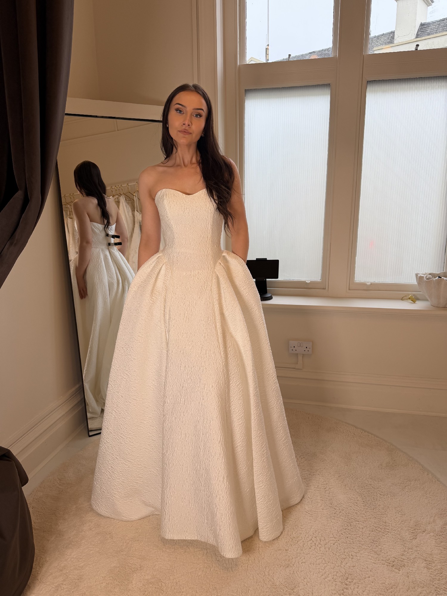 This can be taken out by 1 dress size and taken in by two dress sizes - we work in cm's and not inches. We also have an in house seamstress so can advise on any alterations you plan to make first hand. Please provide accurate measurements as all dresses are non refundable. As the new season approaches we are making space for new dresses. If you have any questions at all please contact the bridal studio direct or send us a message.