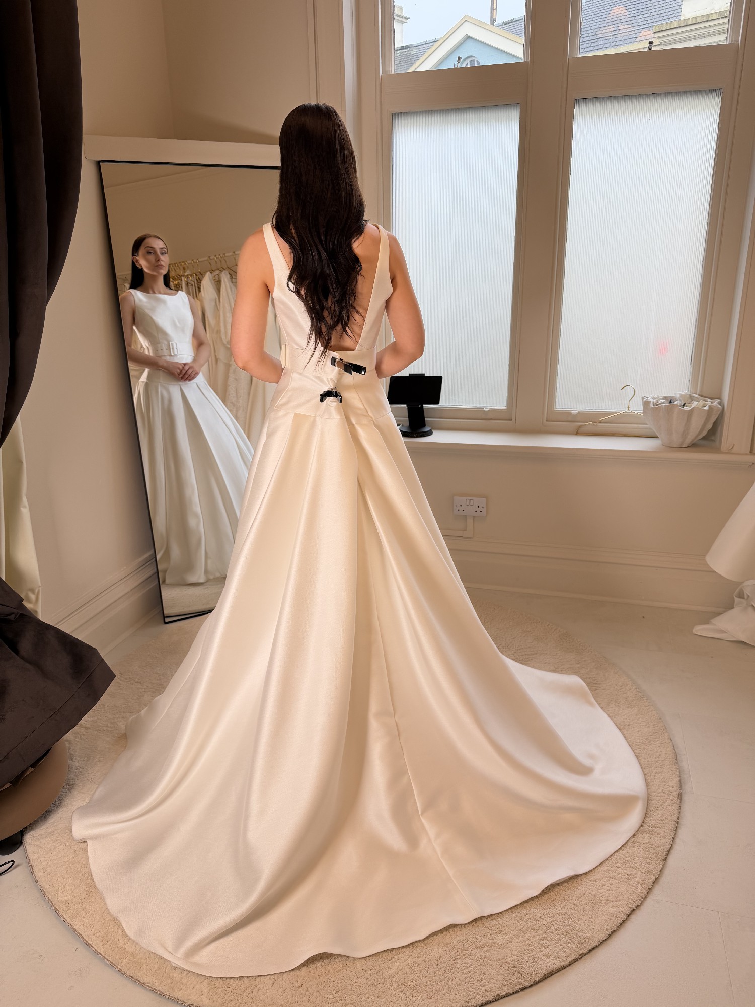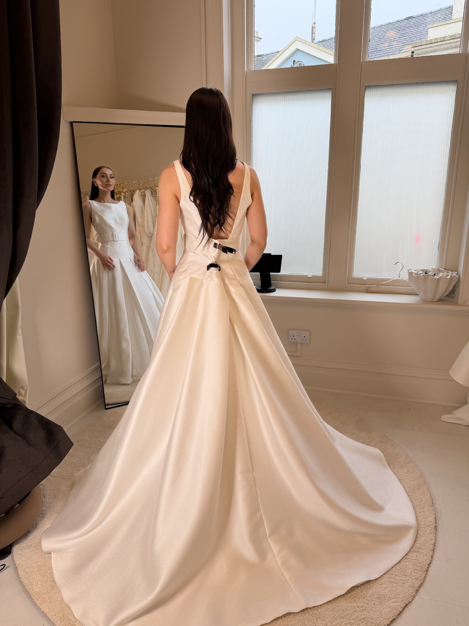 This can be taken out by 1 dress size and taken in by two dress sizes - we work in cm's and not inches. We also have an in house seamstress so can advise on any alterations you plan to make first hand. Please provide accurate measurements as all dresses are non refundable. As the new season approaches we are making space for new dresses. If you have any questions at all please contact the bridal studio direct or send us a message.