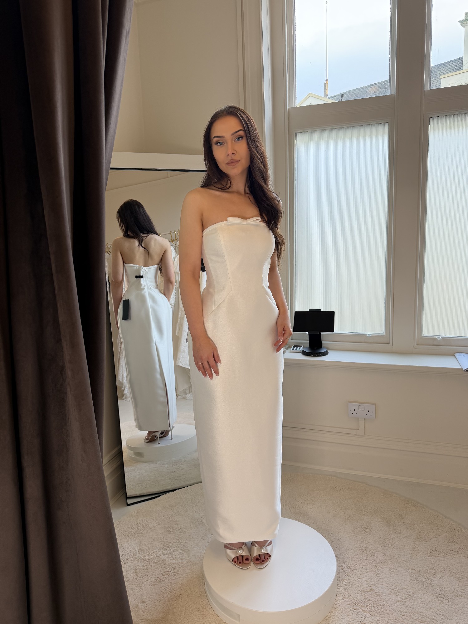 This can be taken out by 1 dress size and taken in by two dress sizes - we work in cm's and not inches. We also have an in house seamstress so can advise on any alterations you plan to make first hand. Please provide accurate measurements as all dresses are non refundable. As the new season approaches we are making space for new dresses. If you have any questions at all please contact the bridal studio direct or send us a message.