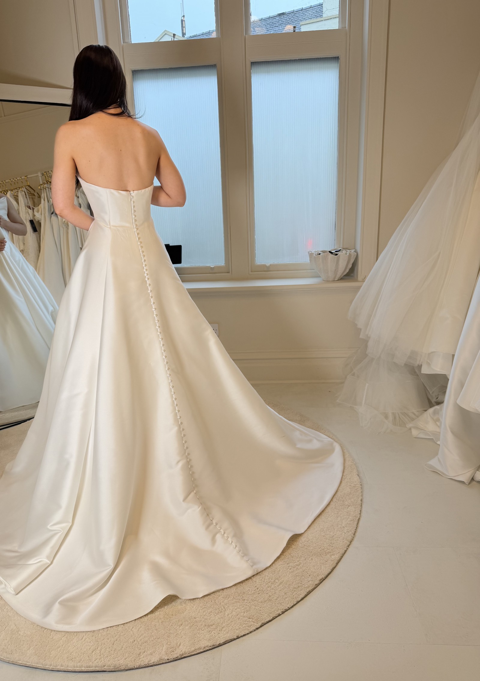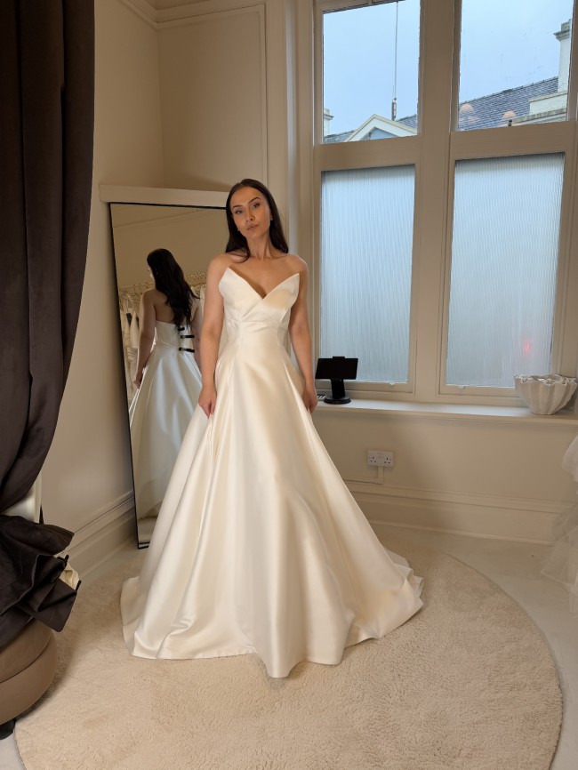 This can be taken out by 1 dress size and taken in by two dress sizes - we work in cm's and not inches. We also have an in house seamstress so can advise on any alterations you plan to make first hand. Please provide accurate measurements as all dresses are non refundable. As the new season approaches we are making space for new dresses. If you have any questions at all please contact the bridal studio direct or send us a message.
