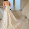 Contemporary dress in Luxe Satin with a fitted pleated bodice and bardot sleeves. Full skirt with train.