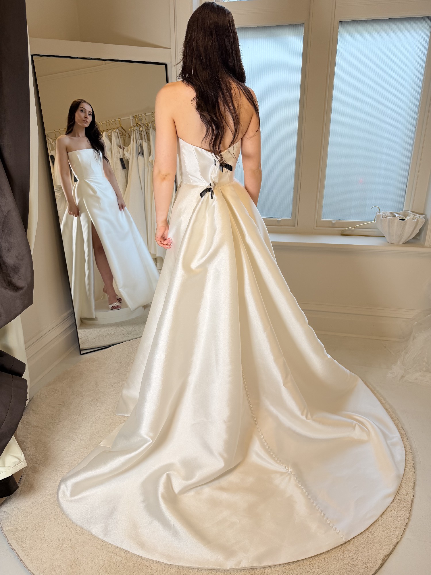 This can be taken out by 1 dress size and taken in by two dress sizes - we work in cm's and not inches. We also have an in house seamstress so can advise on any alterations you plan to make first hand. Please provide accurate measurements as all dresses are non refundable. As the new season approaches we are making space for new dresses. If you have any questions at all please contact the bridal studio direct or send us a message.