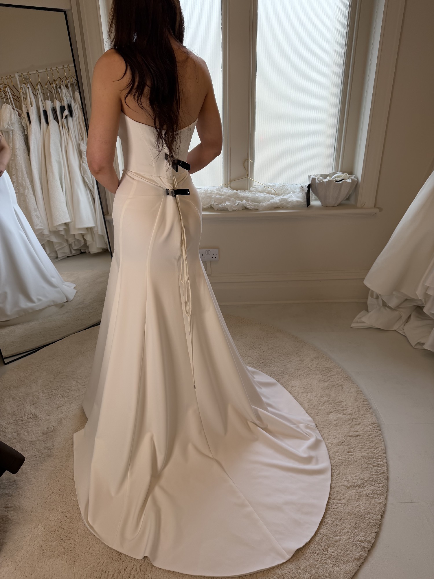 This can be taken out by 1 dress size and taken in by two dress sizes - we work in cm's and not inches. We also have an in house seamstress so can advise on any alterations you plan to make first hand. Please provide accurate measurements as all dresses are non refundable. As the new season approaches we are making space for new dresses. If you have any questions at all please contact the bridal studio direct or send us a message.