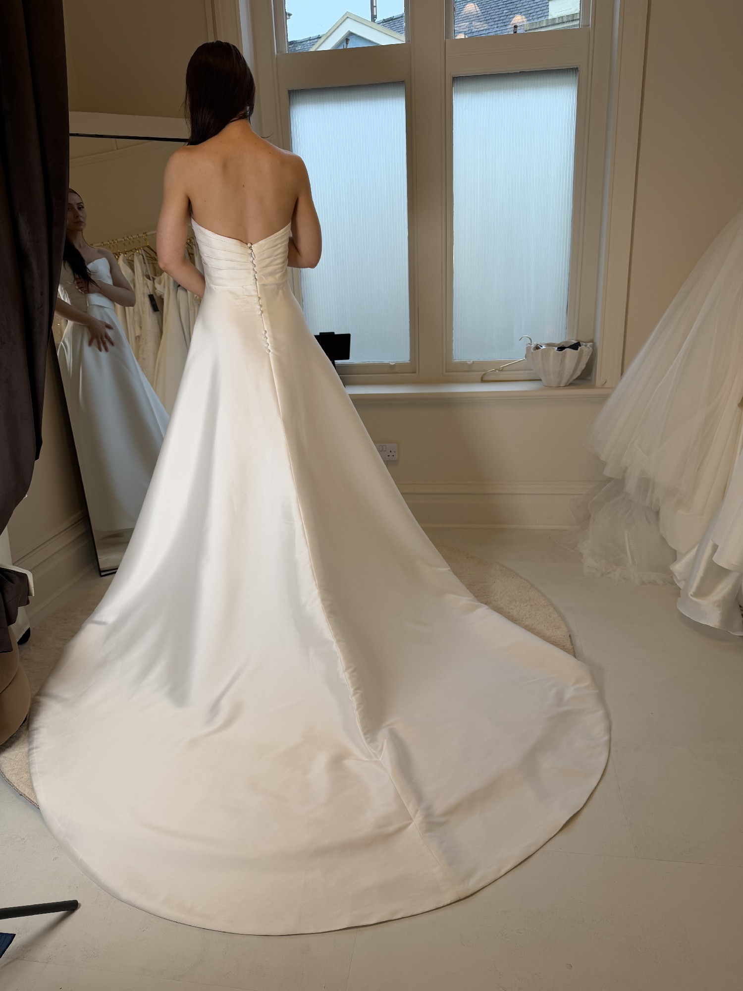 This can be taken out by 1 dress size and taken in by two dress sizes - we work in cm's and not inches. We also have an in house seamstress so can advise on any alterations you plan to make first hand. Please provide accurate measurements as all dresses are non refundable. As the new season approaches we are making space for new dresses. If you have any questions at all please contact the bridal studio direct or send us a message.