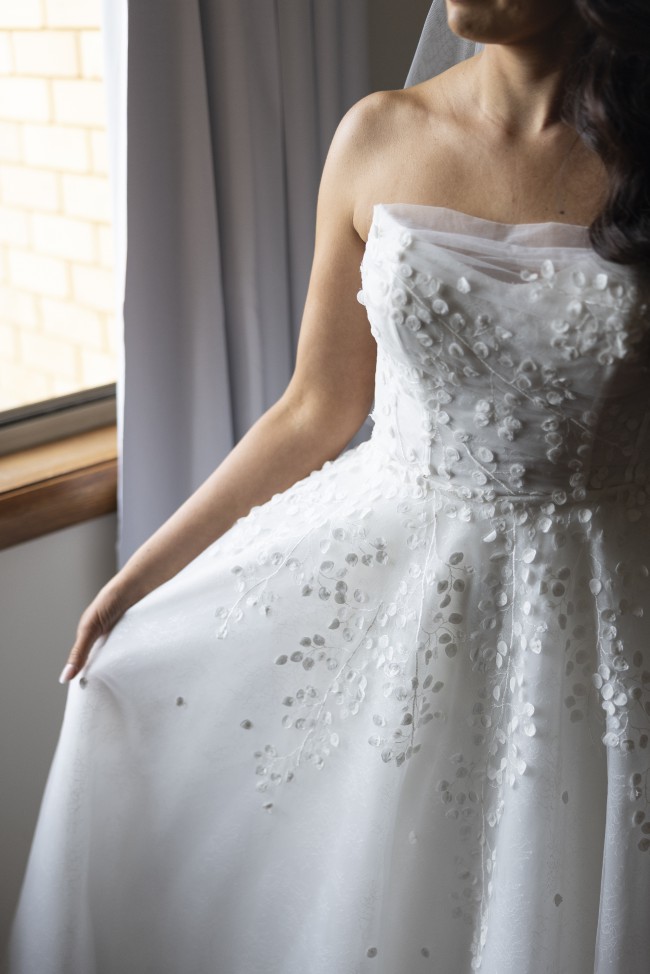 This dress made me feel confident, elegant, and completely myself on my wedding day. It’s beautifully made and incredibly versatile. It's perfect for a bride who appreciates fine detailing and wants a gown that feels both modern and romantic and wants two dresses in one. I truly hope it brings the same magic to its next bride.