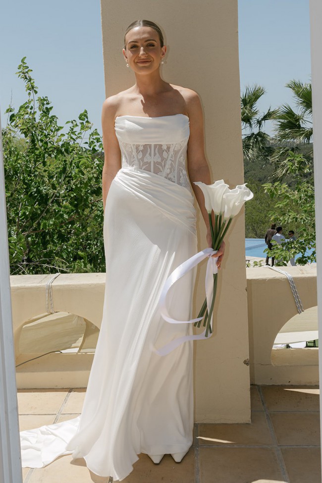 The dress feels traditional with a unique twist with the vine lace and corset bodice.