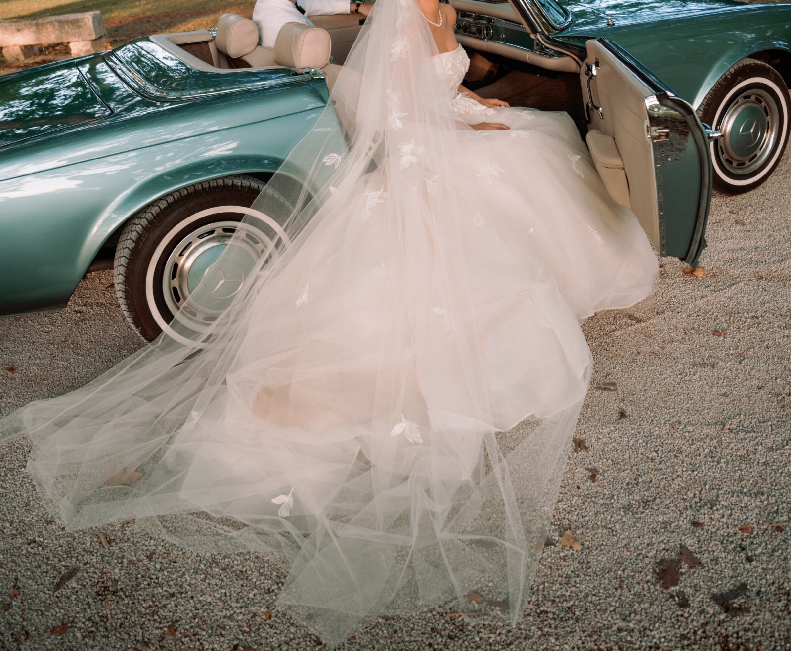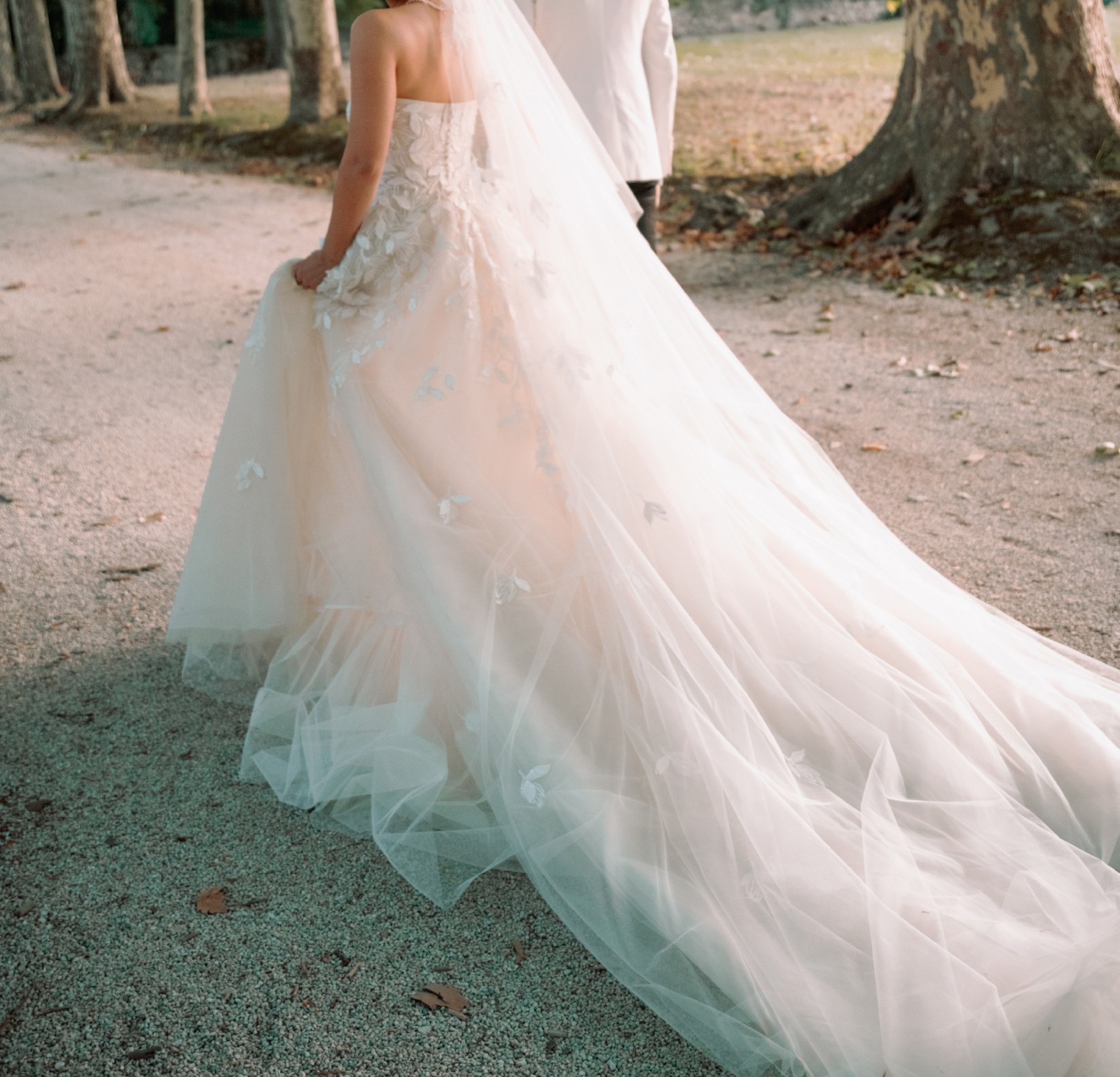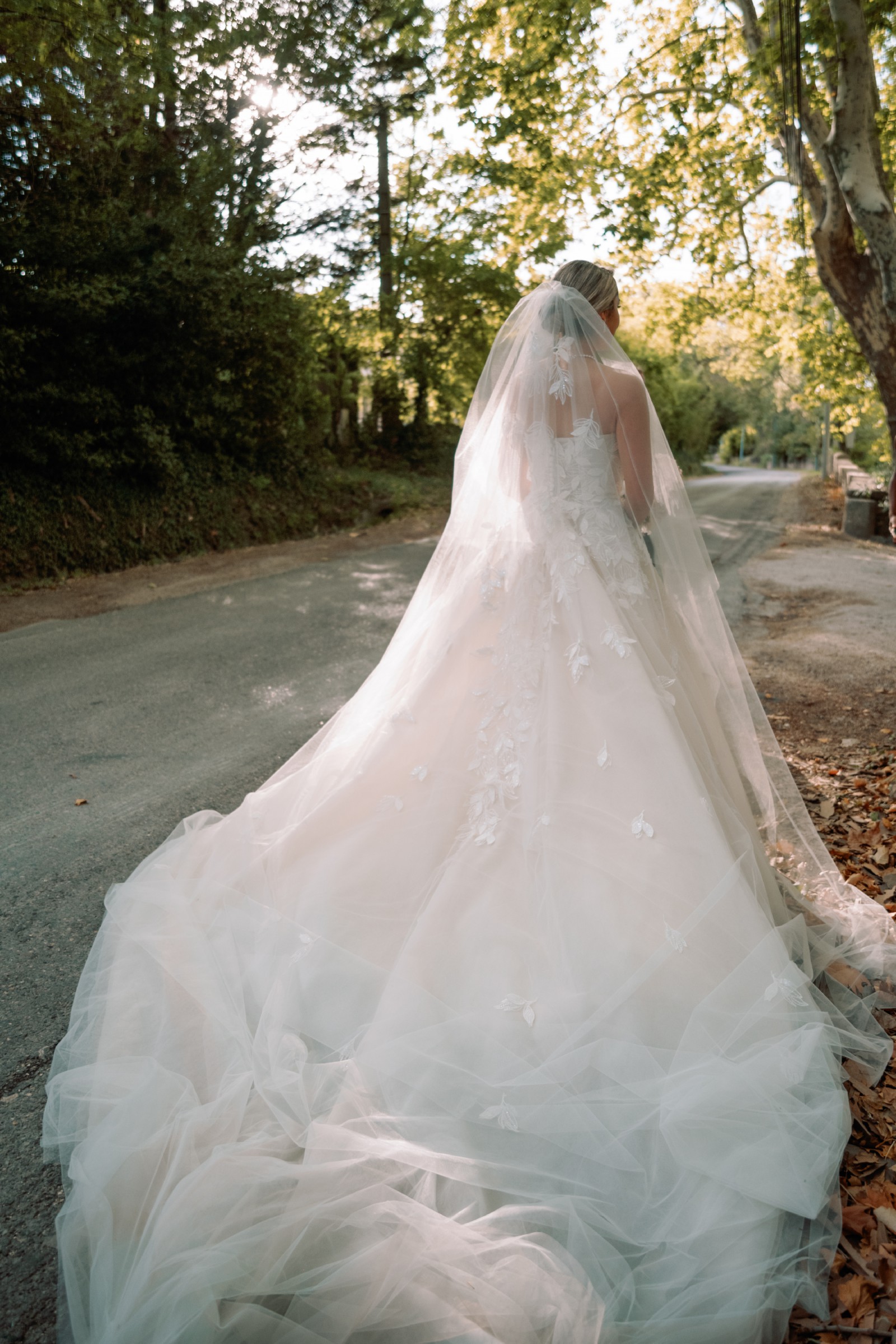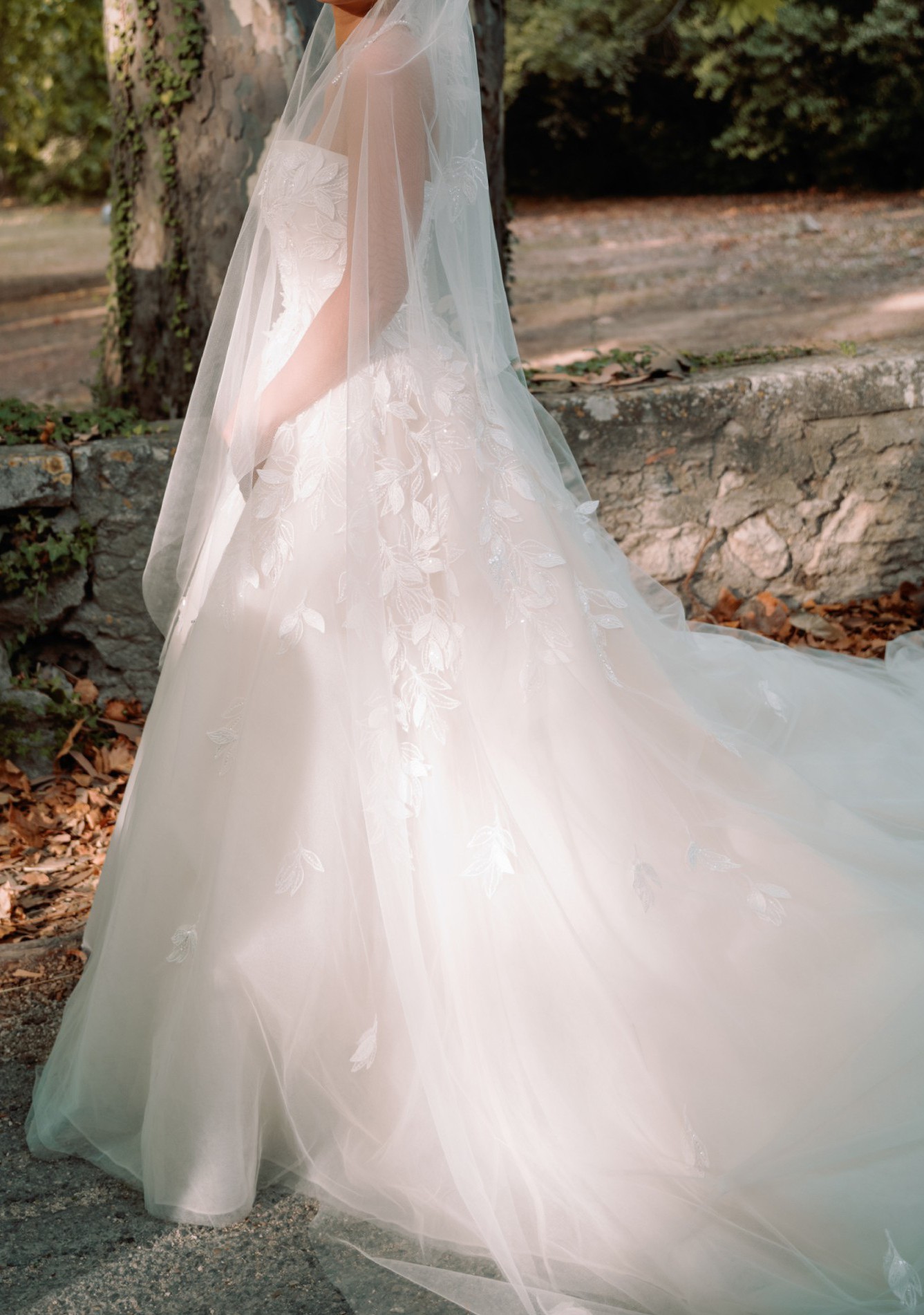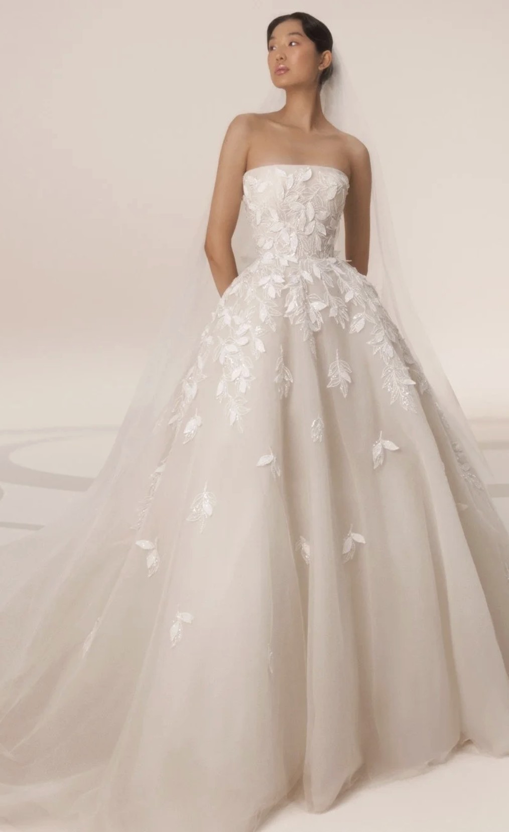 This romantic and timeless Elie Saab Fall 2023 - Look 5 wedding dress was my dream wedding dress for my South of France wedding. It was professionally dry cleaned afterward. It comes in the original dress bag. Please note the veil is not included.