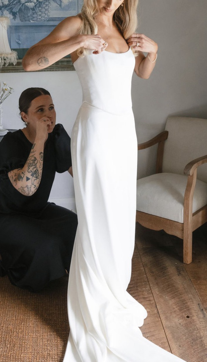The skirt was super long so was hemmed but still had that gorgeous train! I am 168cm and wore 10cm heels for the ceremony.