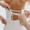 I altered the corset so that it has a lace up back (instead of the original zip) because I loved the look/vibe and it gave a fully customisable fit. I wore it super cinched for photos and ceremony and then could loosen it off for dinner and dancing! The lace up style felt super secure and doesn’t need anything underneath bra wise unless you want it!