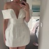 For sleek second looks, introducing Cali. The structured bodice features a deep v neckline and off shoulder detail and its tulip-shaped skirt flatters evert form, delivering a minimalist aesthetic with maximum impact.