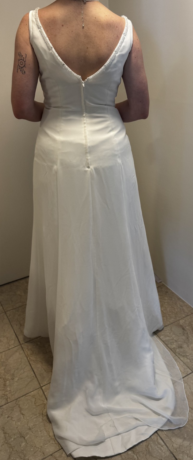 The gown has never been worn, and has been kept in pristine condition in the wardrobe, inside the original dress bag.