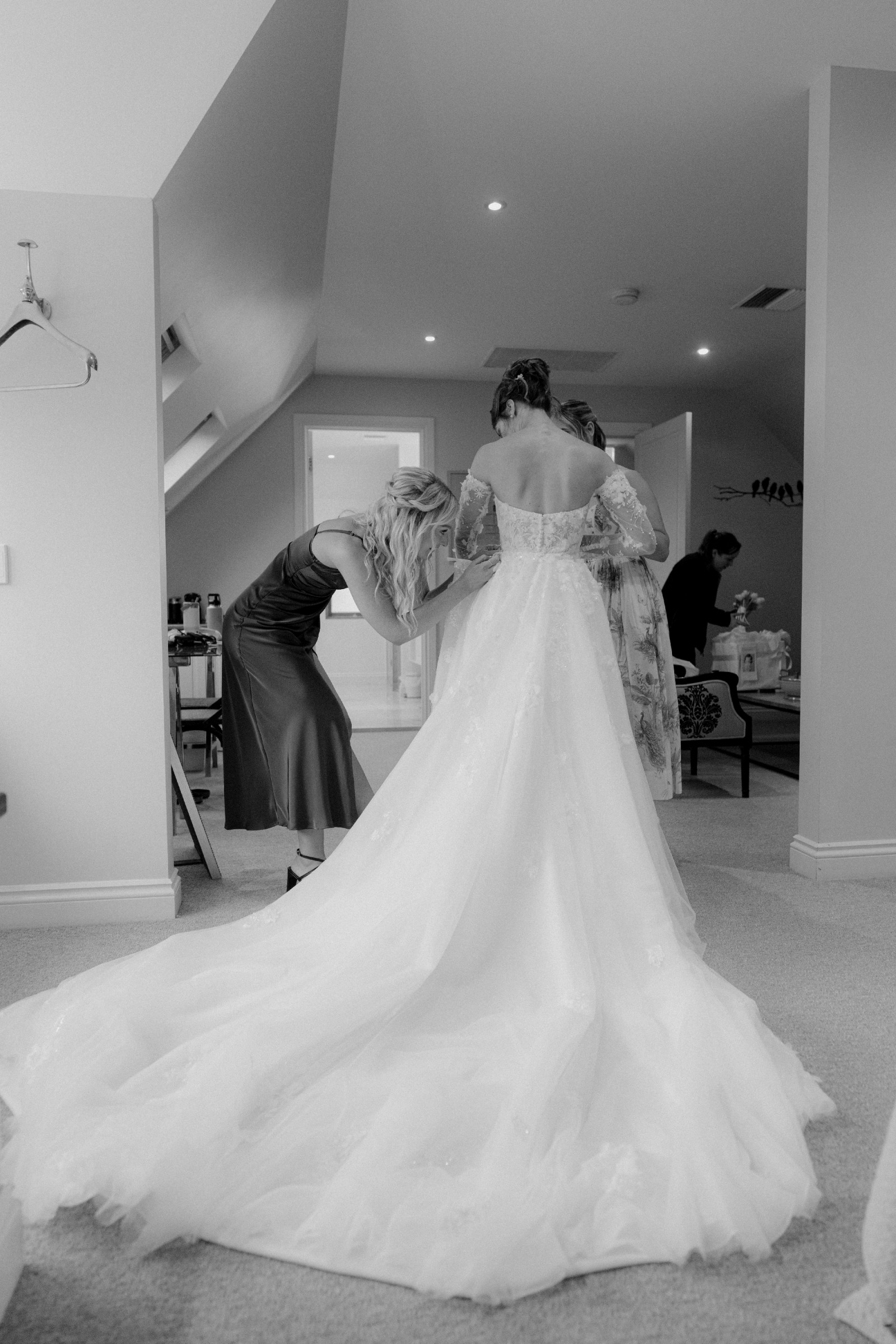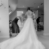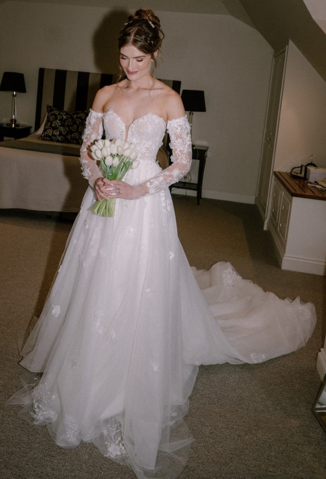 Designer Martina Liana. Giovanna Gown with sleeves and overskirt.