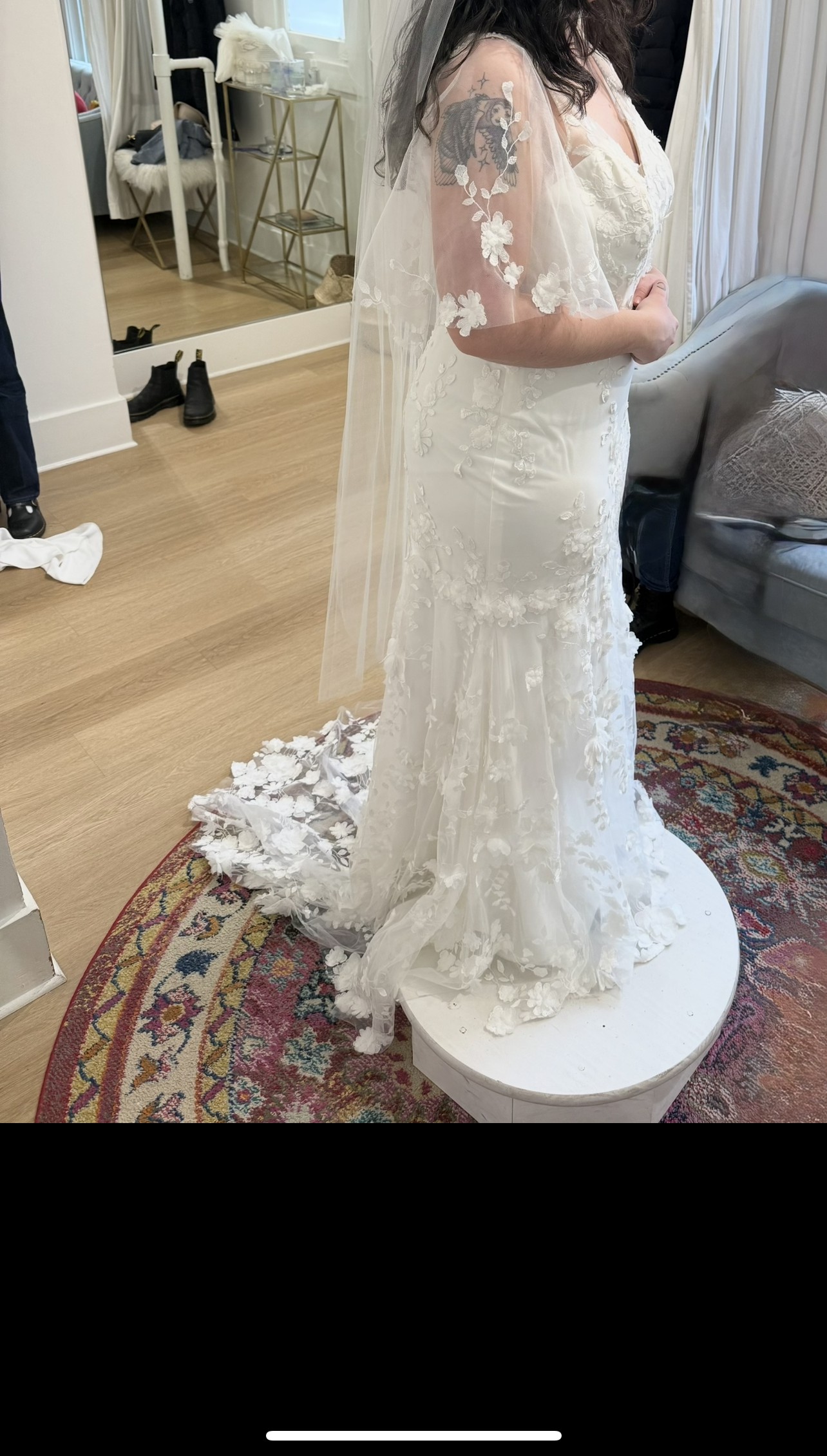 No bad luck here! I bought the dress, but later decided it wasn't for me. I did get it fitted, and the seamstress left me some of the lace that was cut off. So you can put it on a handbag or shoes, whatever your heart desires! I just want this dress to find its home!