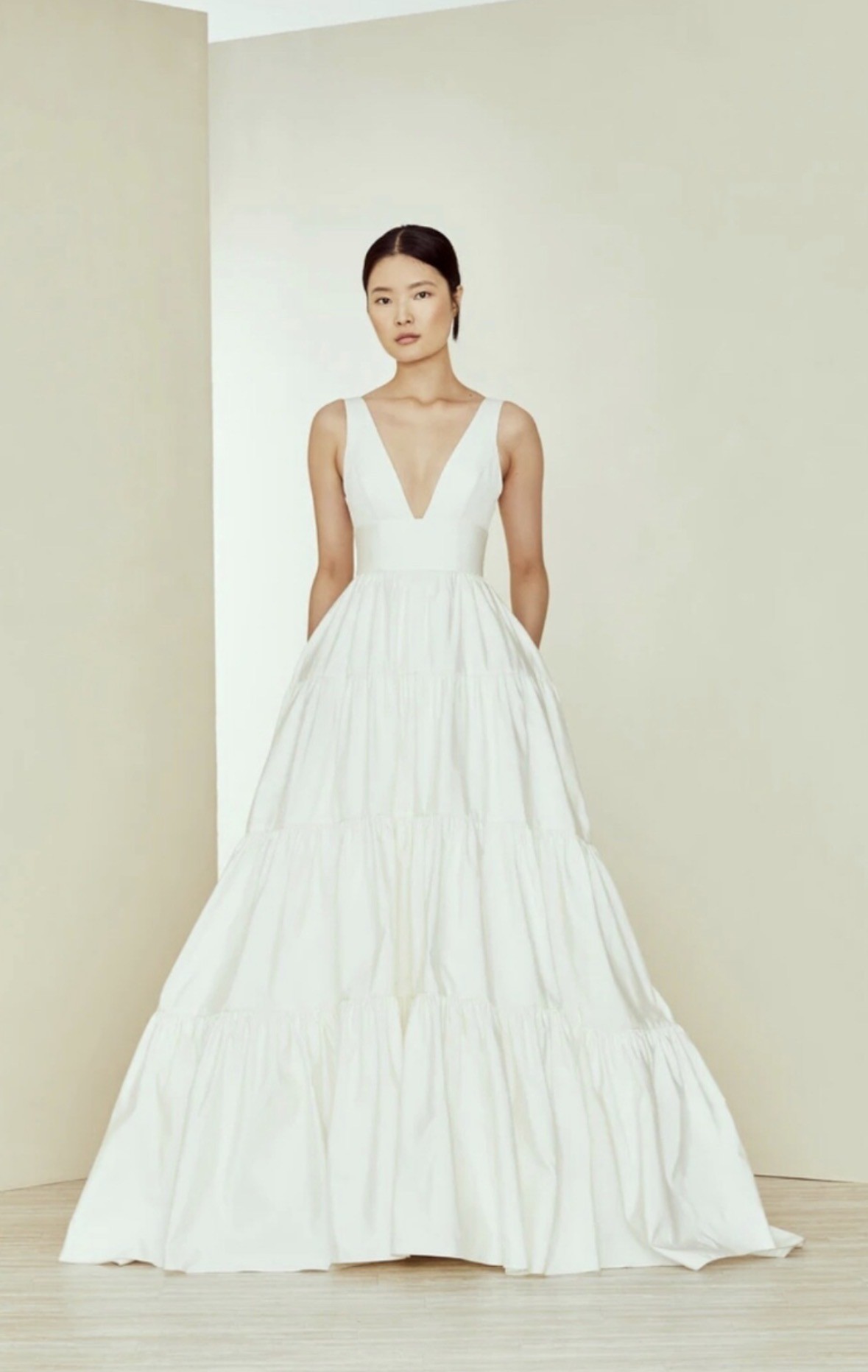 This 2019 Amsale Connor gown is lovely and everything I ever wanted, but sadly I gained weight and cannot fit into it anymore. It fit like a glove when I first bought it- at the time I was [removed]lbs, wearing a size 6-8 regular dress size (12-14 bridal size) and a size 34D bra. I went up a full bra size so the breast area is really the only area that doesn’t fit anymore.