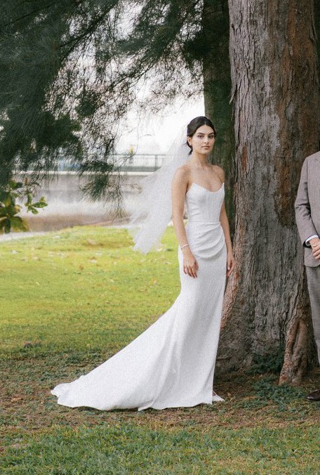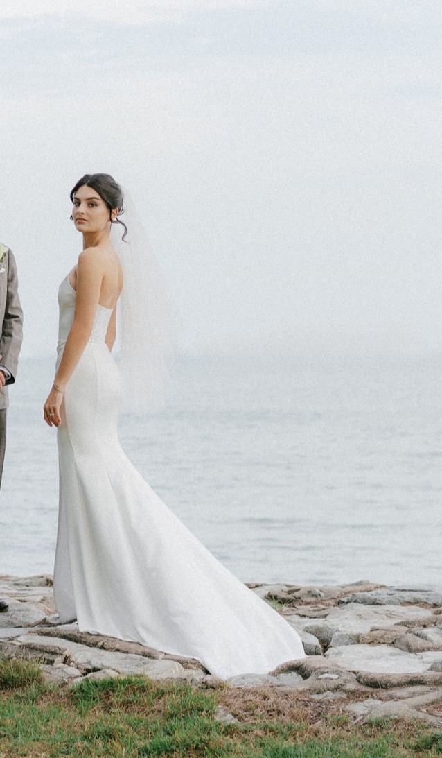 Stunning wedding gown with train and a side slit. Perfect for a summer outdoors wedding (I was very grateful for the slit :)