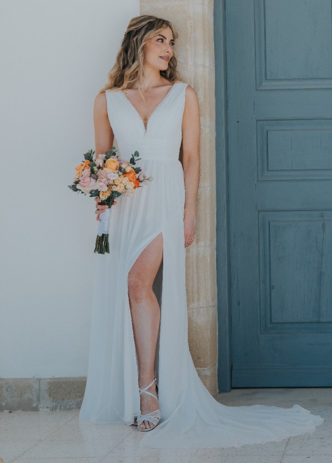 I wore this Wilma dress by Heidi Hudson for my destination wedding in Cyprus. I purchased the dress at Wed2B. Comes with hanger, Wed2B branded dress bag and storage box which can also be used as a flight carry on.