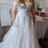 Beautiful sheer bodice with corset boning and covered with floral appliqué, buttoned back with elastic loops and also hook and eyes for extra support to fasten and a zip at the bottom of the buttons.