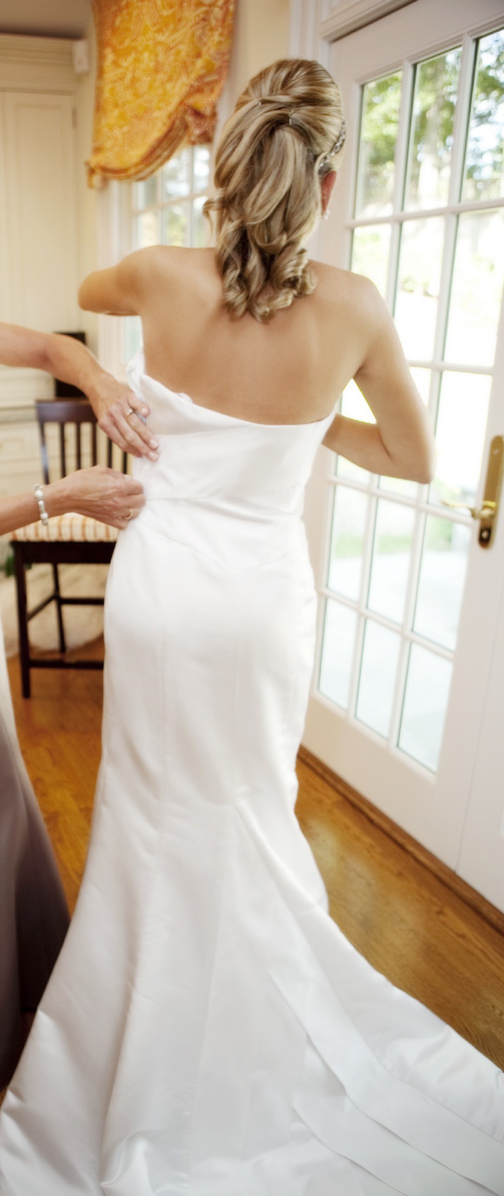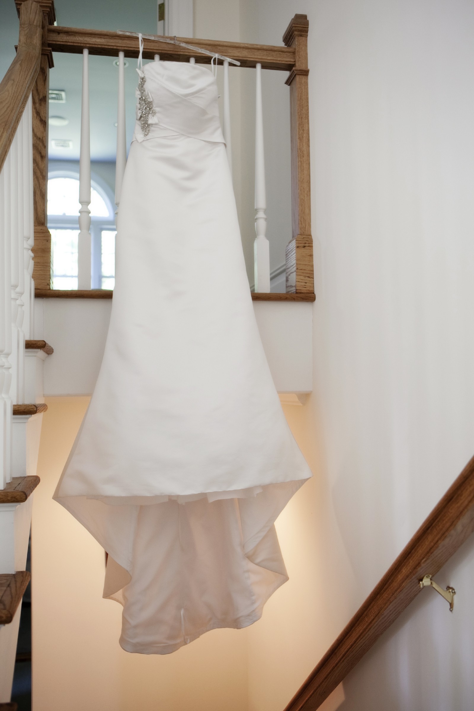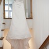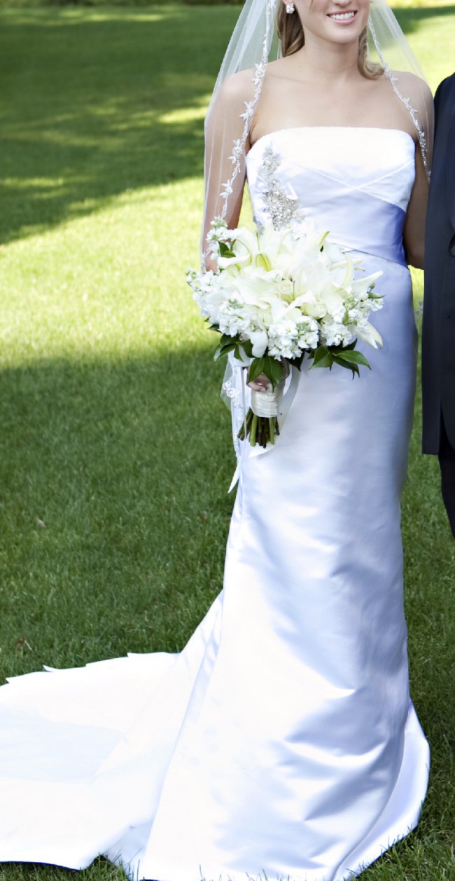 Gorgeous dress. I was 120 lbs. 5'8" wearing this dress with 2 1/2 heels. Was cleaned in a storage box.
