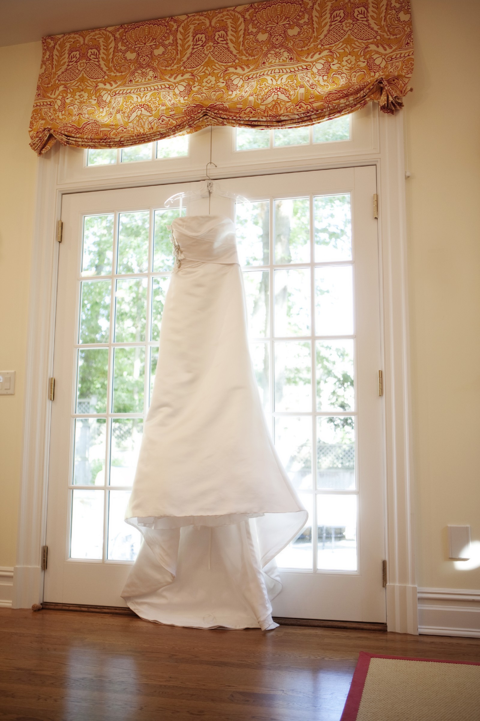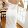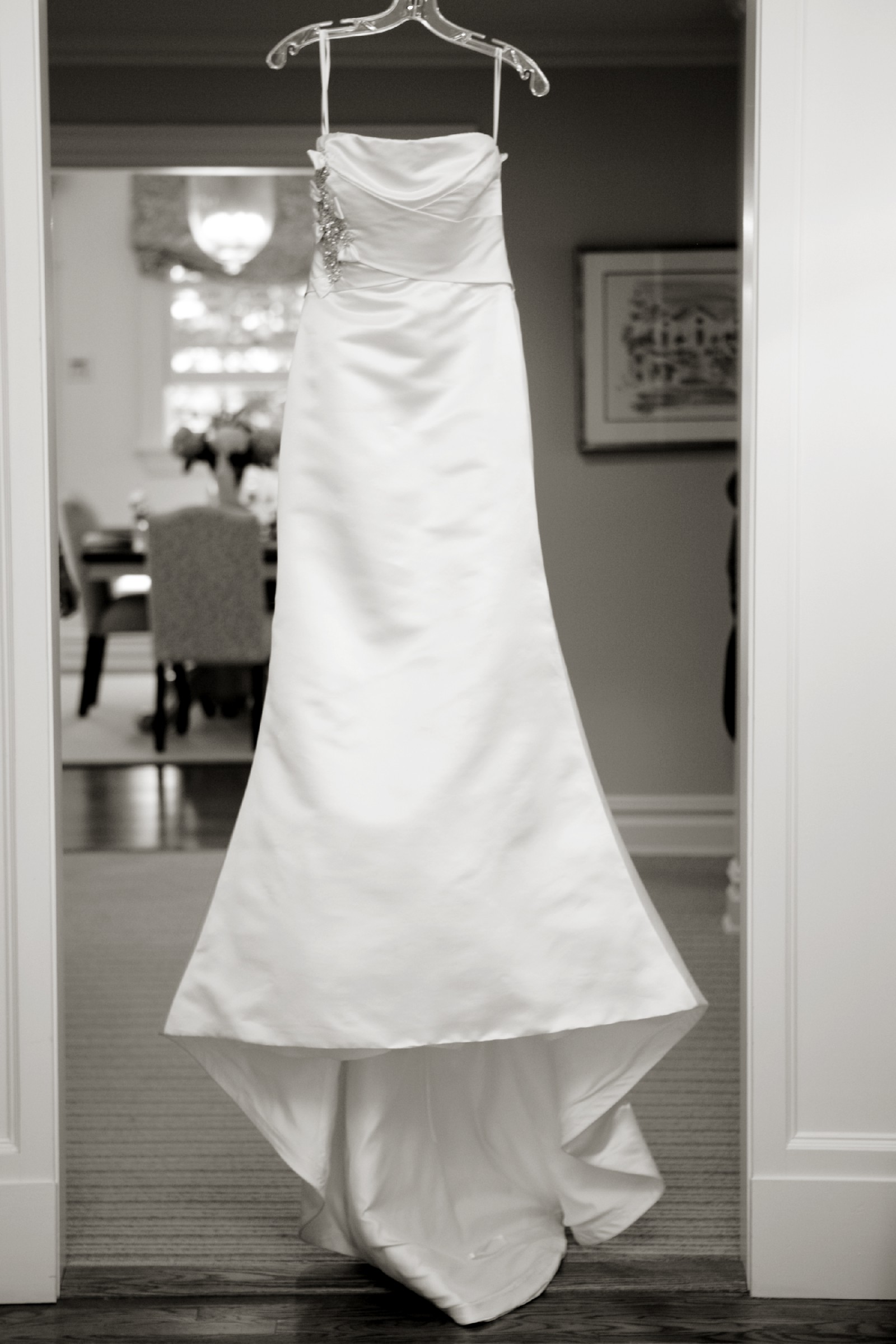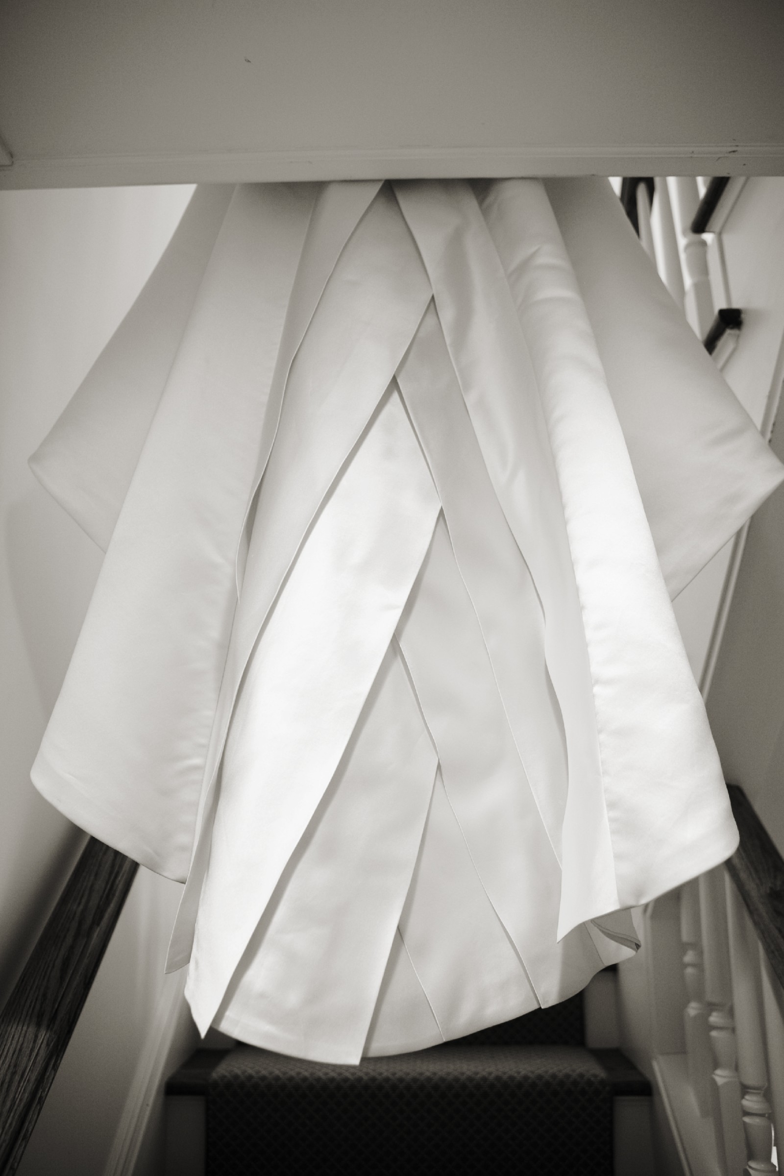 Gorgeous dress. I was 120 lbs. 5'8" wearing this dress with 2 1/2 heels. Was cleaned in a storage box.
