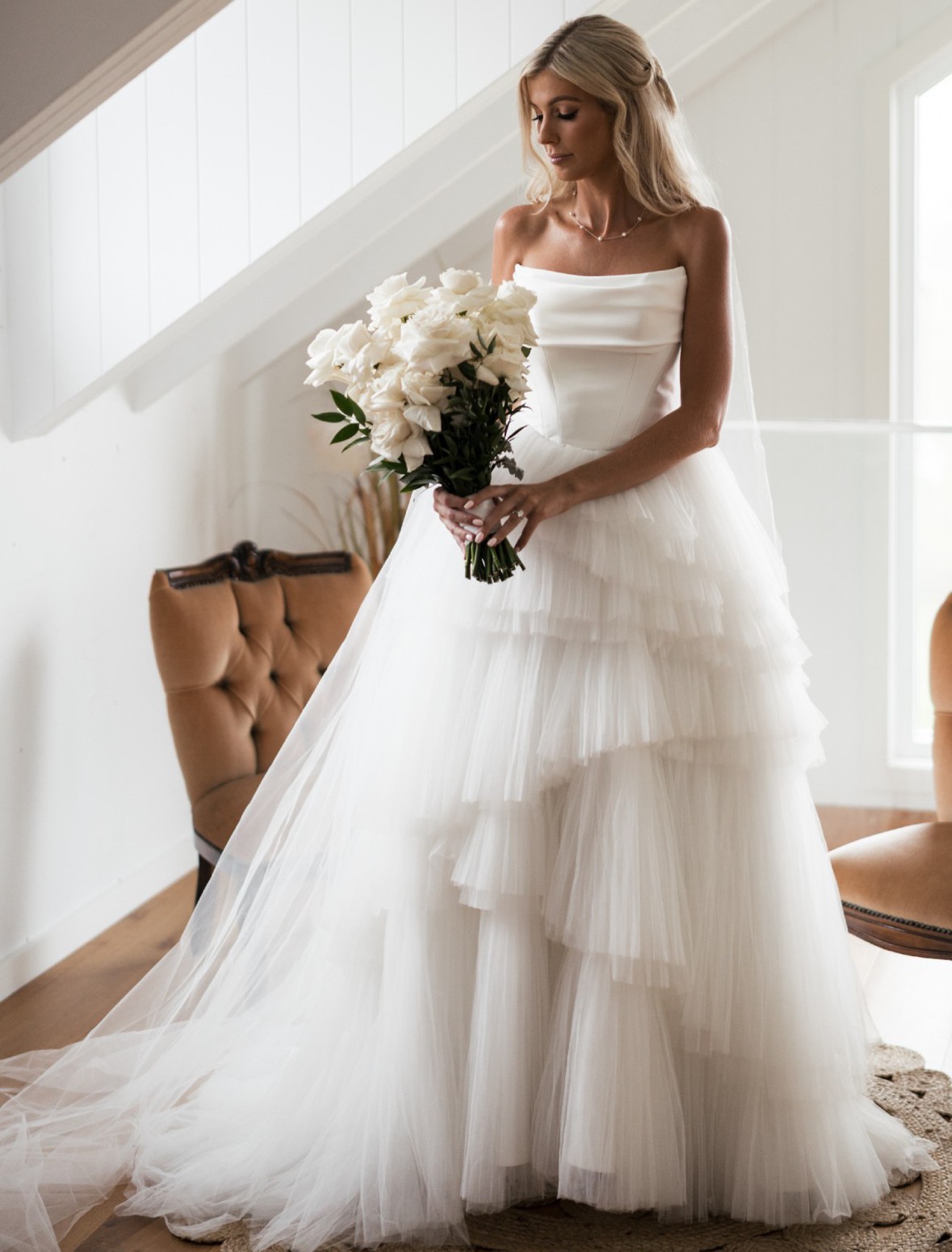 This dress set is so gorgeous. Label size 2 top. Worn by a previous bride for her wedding and worn by myself for a photoshoot. So beautiful, structured and easy to change into and out of! Perfect for both indoor and outdoor wedding where the tulle can catch light and glow bright! Lovely memories were made with this dress on and I hope the next bride is blessed with the same!