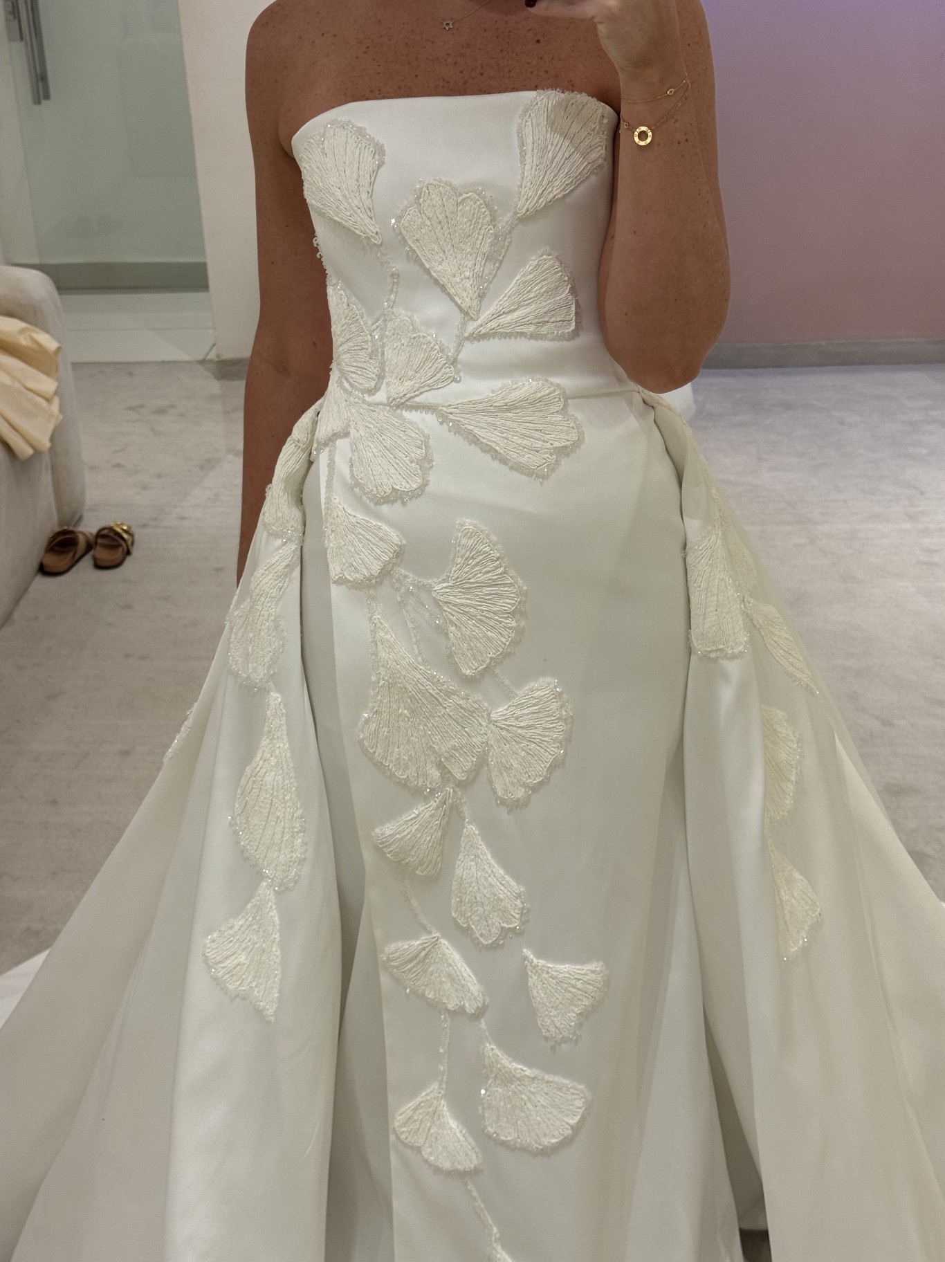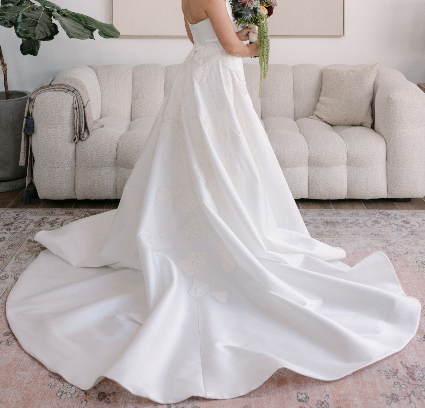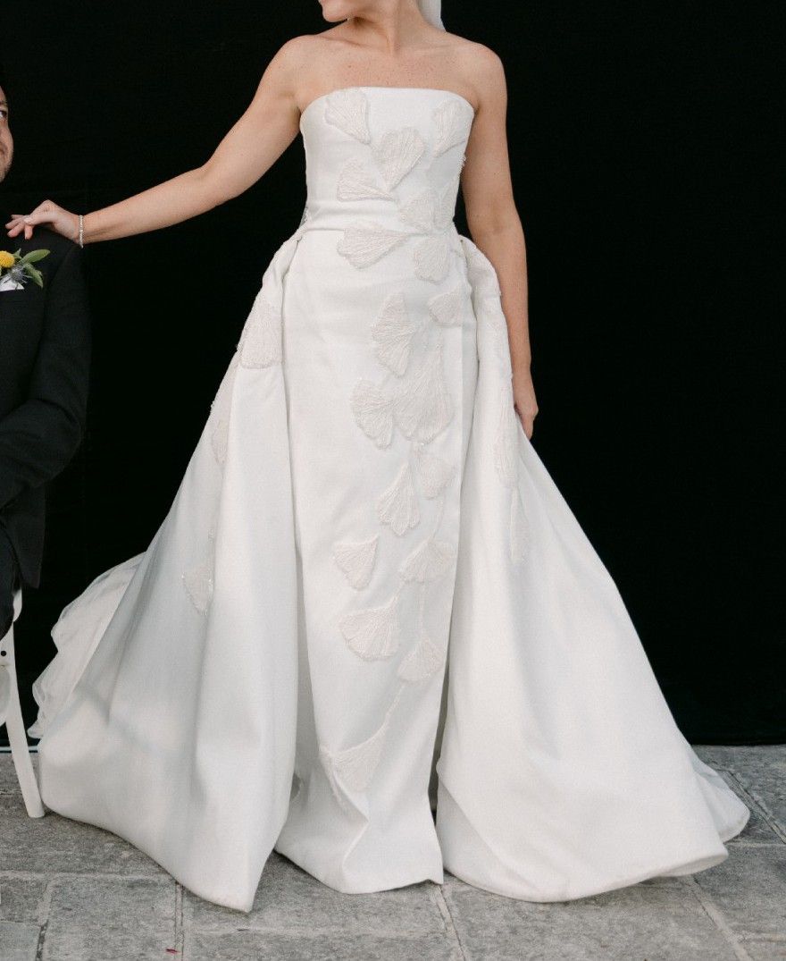 This was truly the gown of my dreams. Elegant, timeless, and completely unique nothing like a typical wedding dress. Perfect for both indoor and outdoor weddings. I searched everywhere and could only find one photo of the model wearing it on Tony Ward's website; it’s so rare that it’s not even posted on the designer’s Instagram, so there’s no risk of guests having seen it before. The print/flowers are handmade, sewn in raffia and finished with tiny clear beads for a soft, subtle shine.