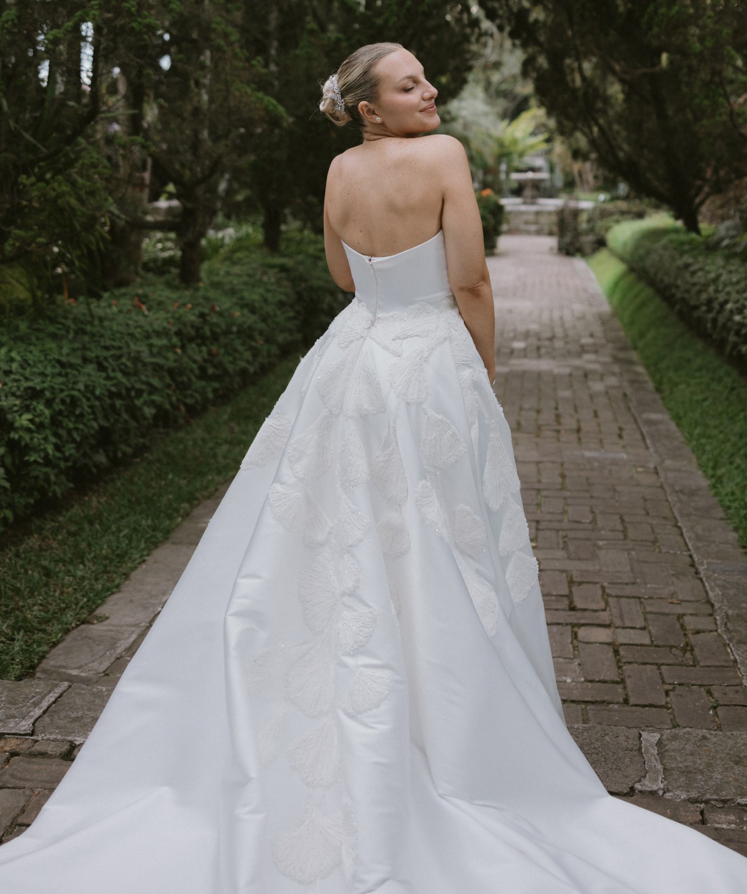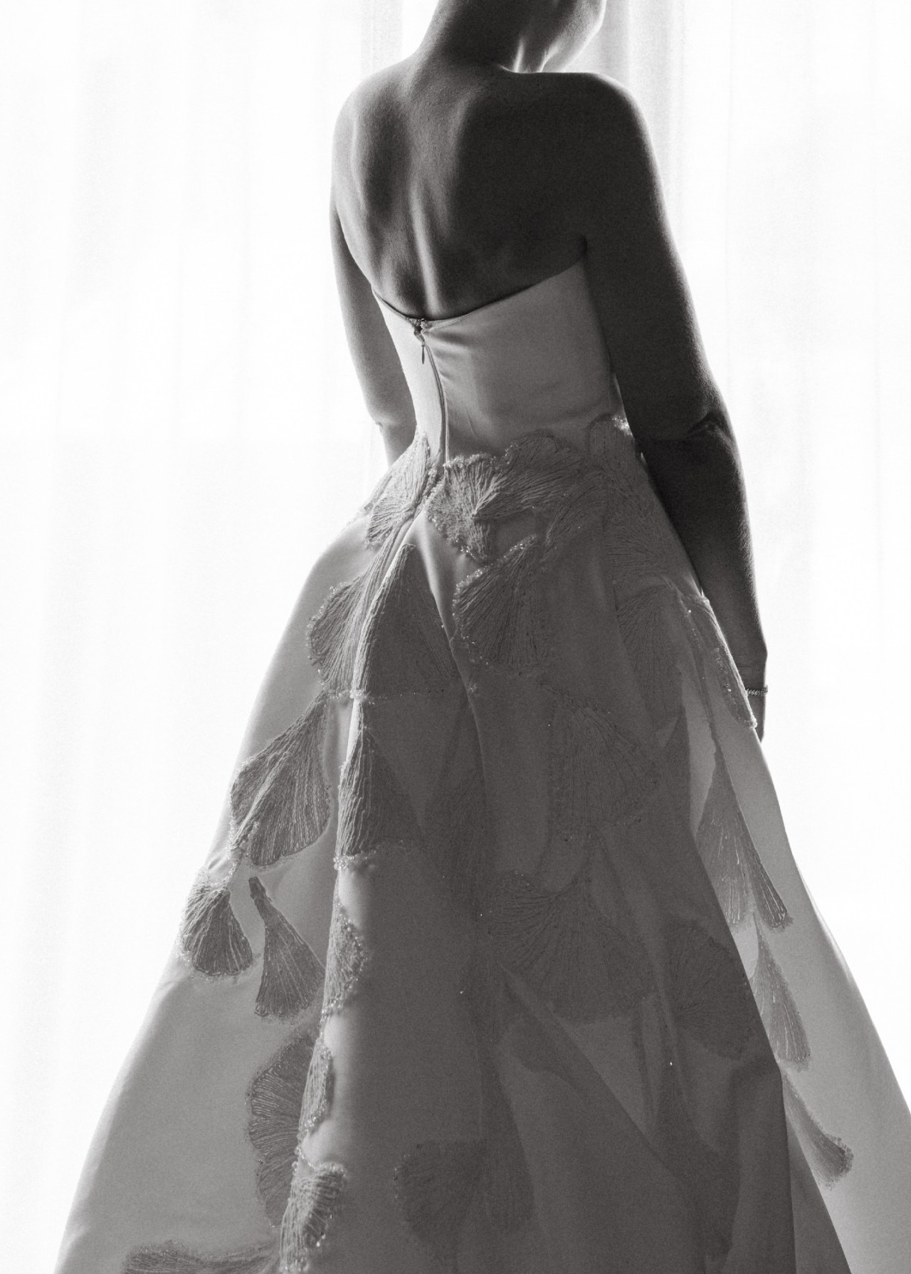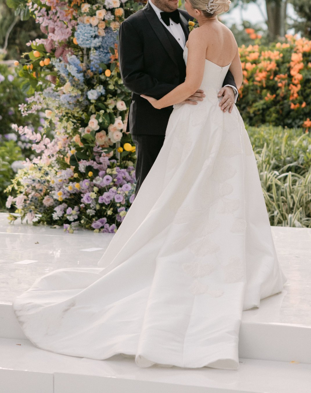 This was truly the gown of my dreams. Elegant, timeless, and completely unique nothing like a typical wedding dress. Perfect for both indoor and outdoor weddings. I searched everywhere and could only find one photo of the model wearing it on Tony Ward's website; it’s so rare that it’s not even posted on the designer’s Instagram, so there’s no risk of guests having seen it before. The print/flowers are handmade, sewn in raffia and finished with tiny clear beads for a soft, subtle shine.
