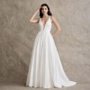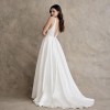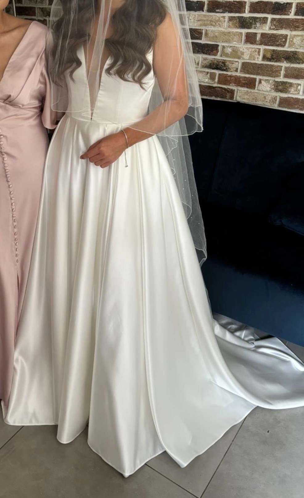 The dress is lightweight, easy to walk in, and has the dream detail every bride loves… pockets! Front pleats make the fabric fall beautifully all day with minimal steaming needed. It truly wore like a dream from ceremony to dance floor.