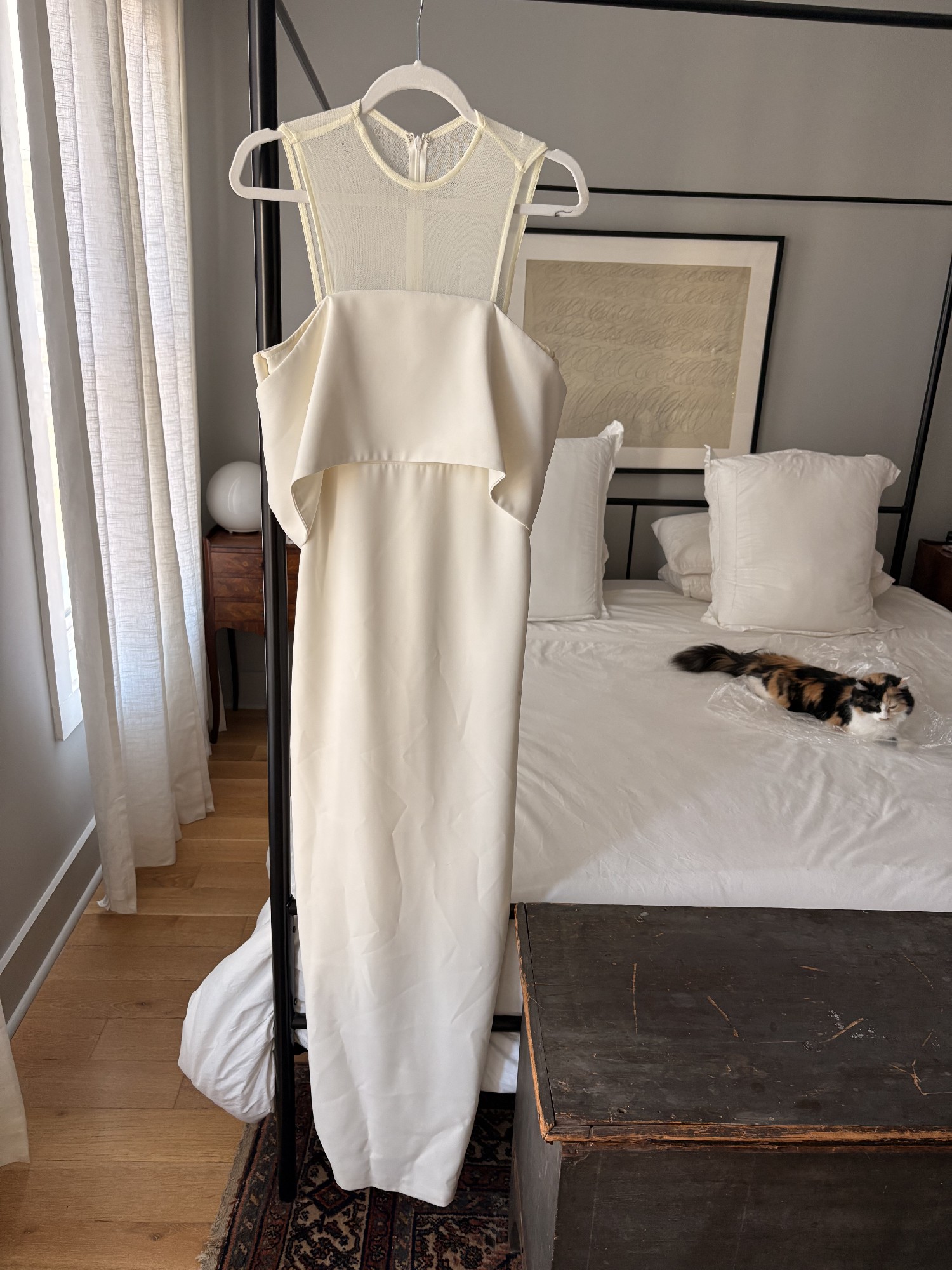 AQ/AQ off-white / cream evening gown / maxi dress / wedding dress. Very good condition. Very small, light makeup stain on front of dress below right hip (see pictures). Size 6. Only worn once.