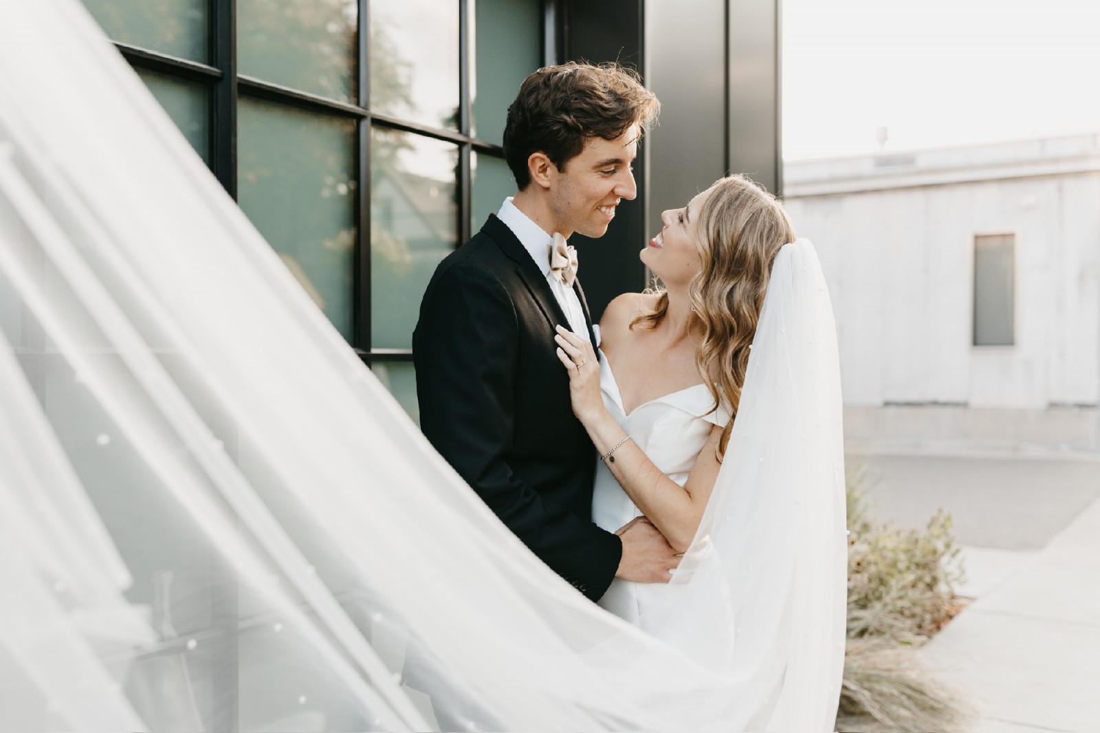 Veil included. No alterations have been made except for adding a bustle and the ability to add detachable sleeves.