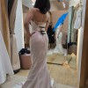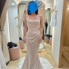 The spaghetti straps are delicate yet supportive, creating a dreamy romantic look without compromising on style. Floor-length and designed in soft, flowing fabric.