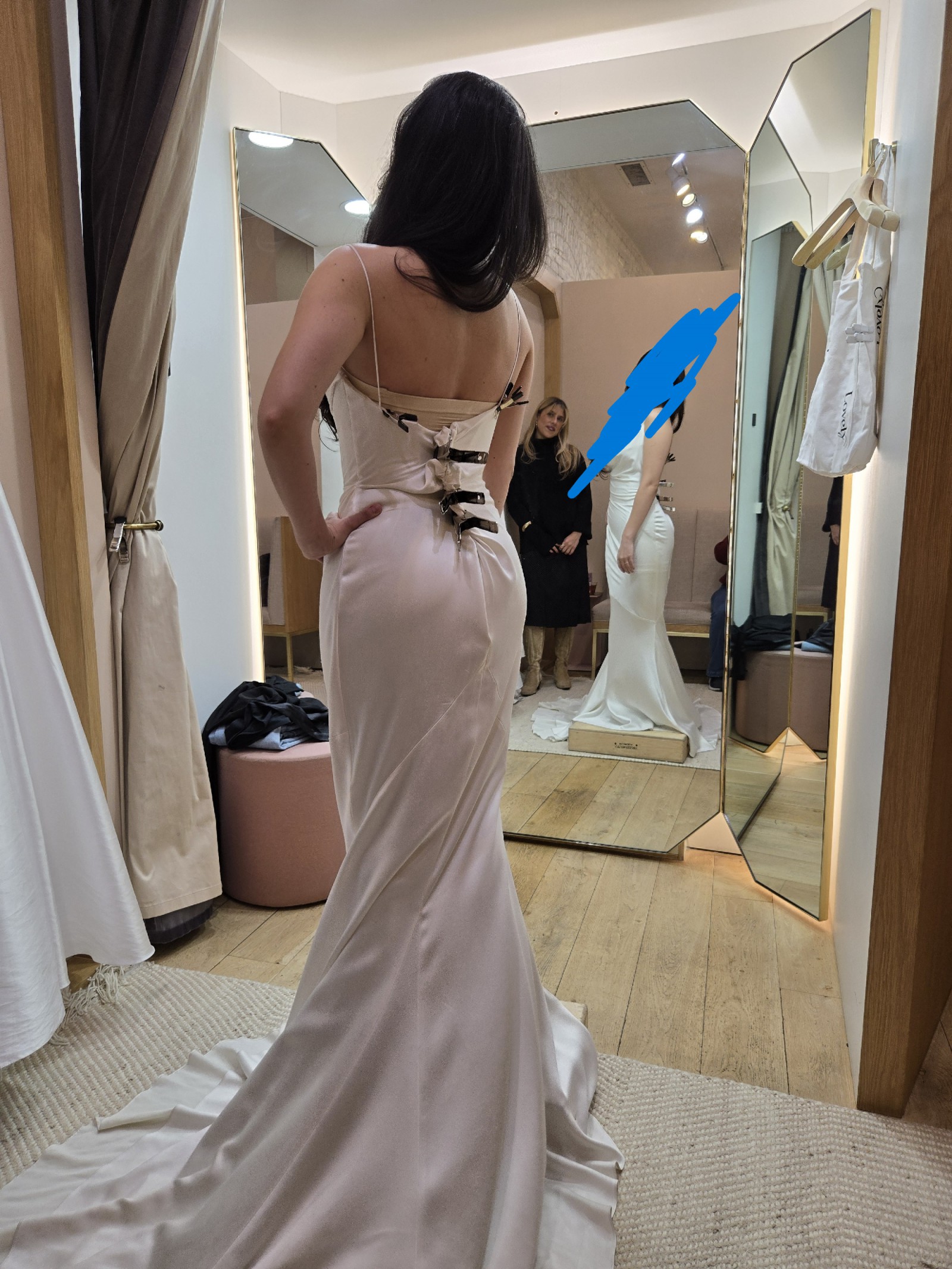 I have a curvy lower body with a narrower frame up top, and this dress fits like a dream, providing just the right amount of give while still hugging my curves in all the right places. I absolutely adored wearing this dress, and it would mean so much to me for another bride to experience the magic of Jane on her special day.