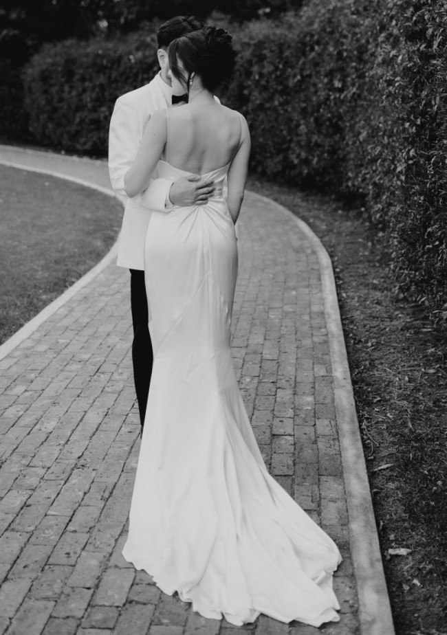 This Jane dress by Katherine Tash is a stunning blend of elegance and modernity that truly made my wedding day unforgettable. The fit and flare silhouette beautifully accentuates the waist while allowing for graceful movement.