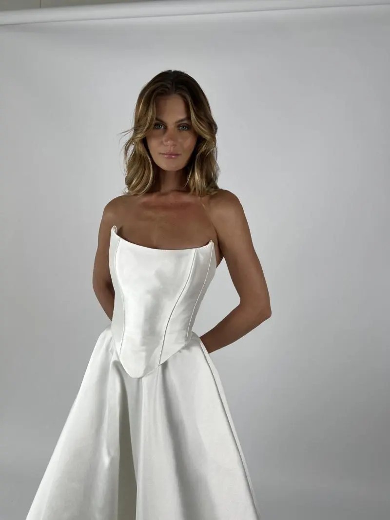 Bought the corset and separate skirt in the Karen Willis Sample sale as I loved how classic the set was. As they are separate pieces you can customise as you see fit. I never ended up wearing either of the pieces as I had a very casual beach wedding instead and it didn't suit the venue/style of the wedding.