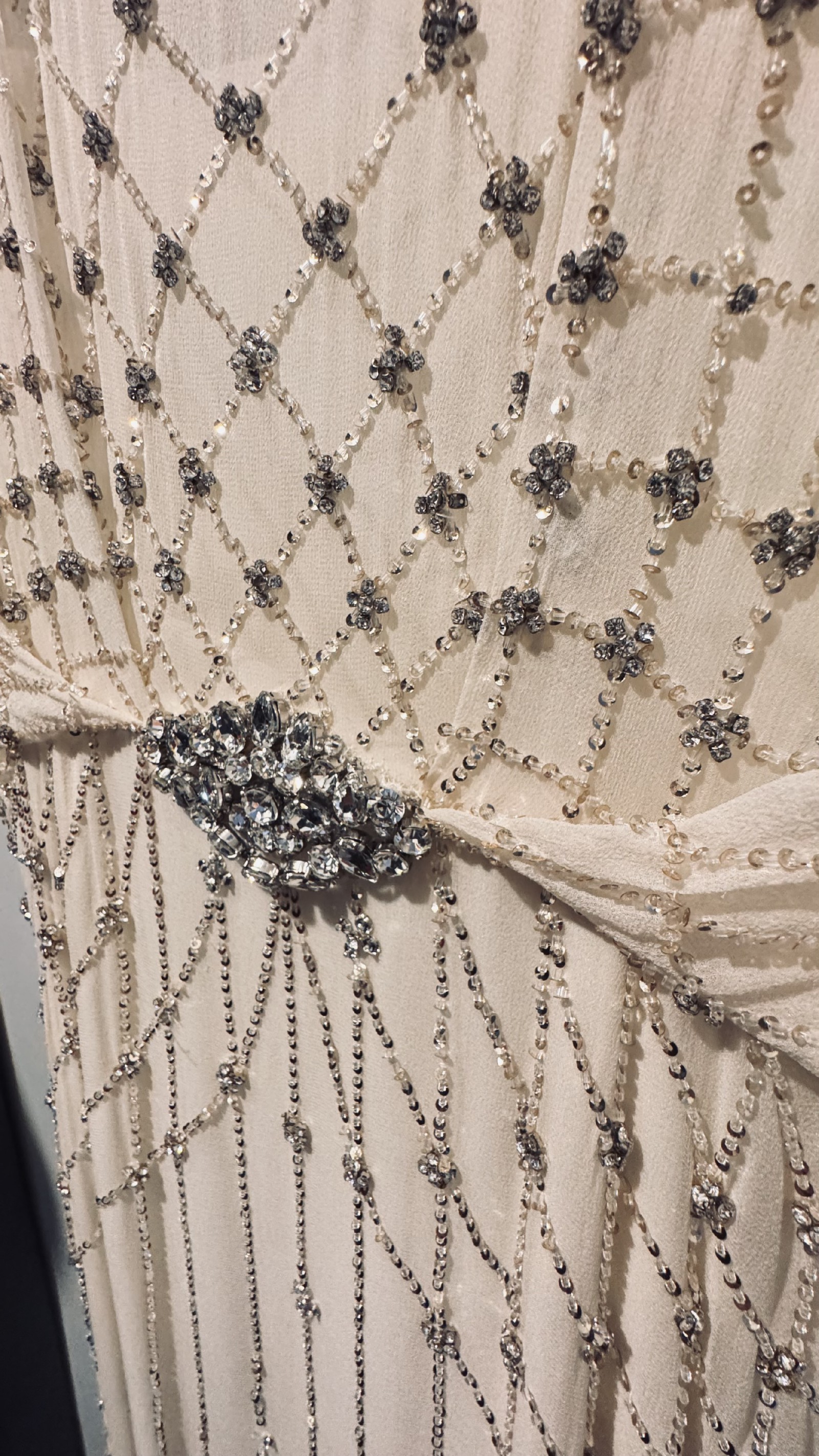 • All-over crystal beadwork in linear/diamond patterns