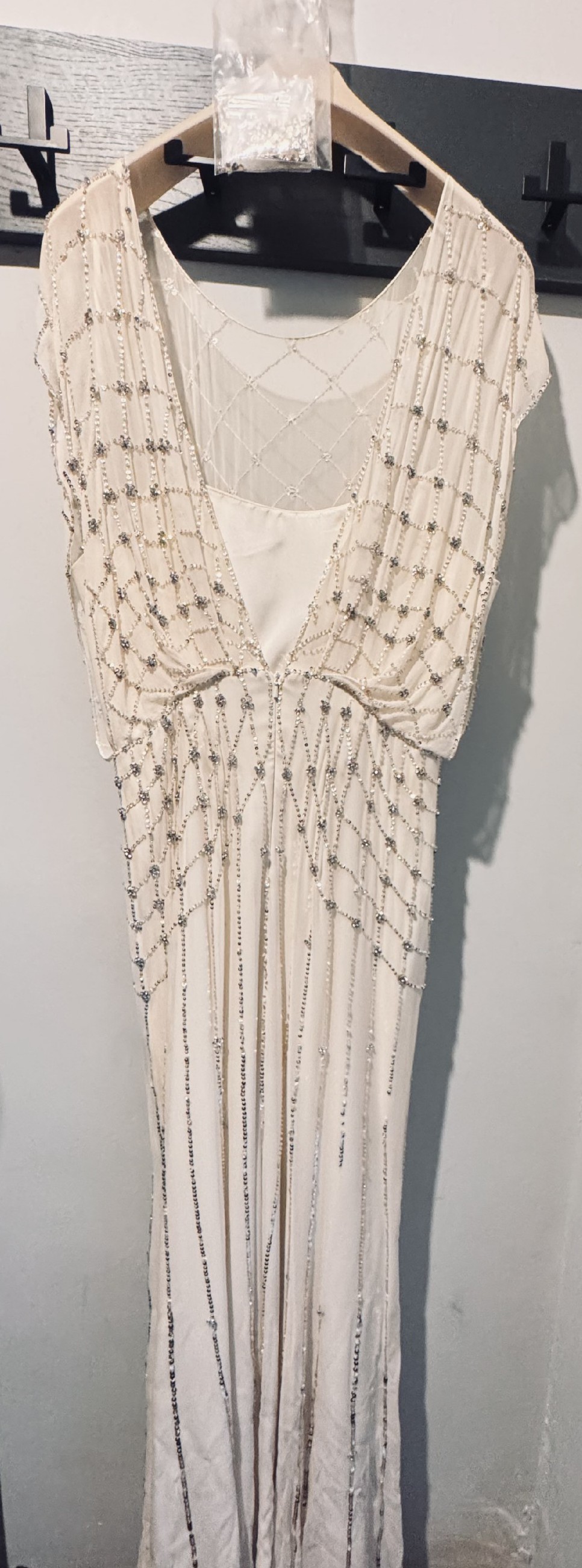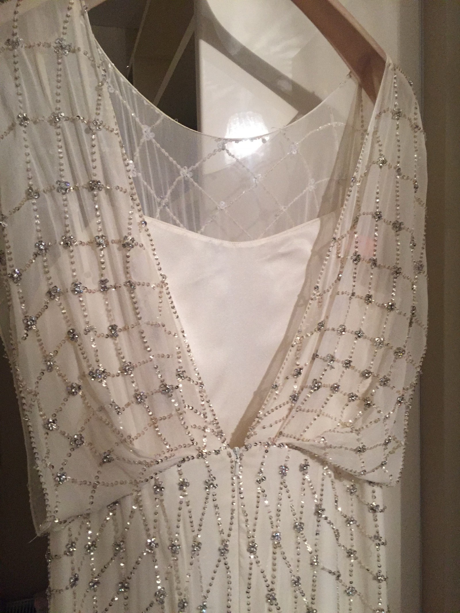Worn once and professionally dry cleaned. In excellent condition with no marks. Some beads need anttending. Includes original Jenny Packham dust bag and spare beads.