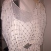• Draped, beaded cap sleeves