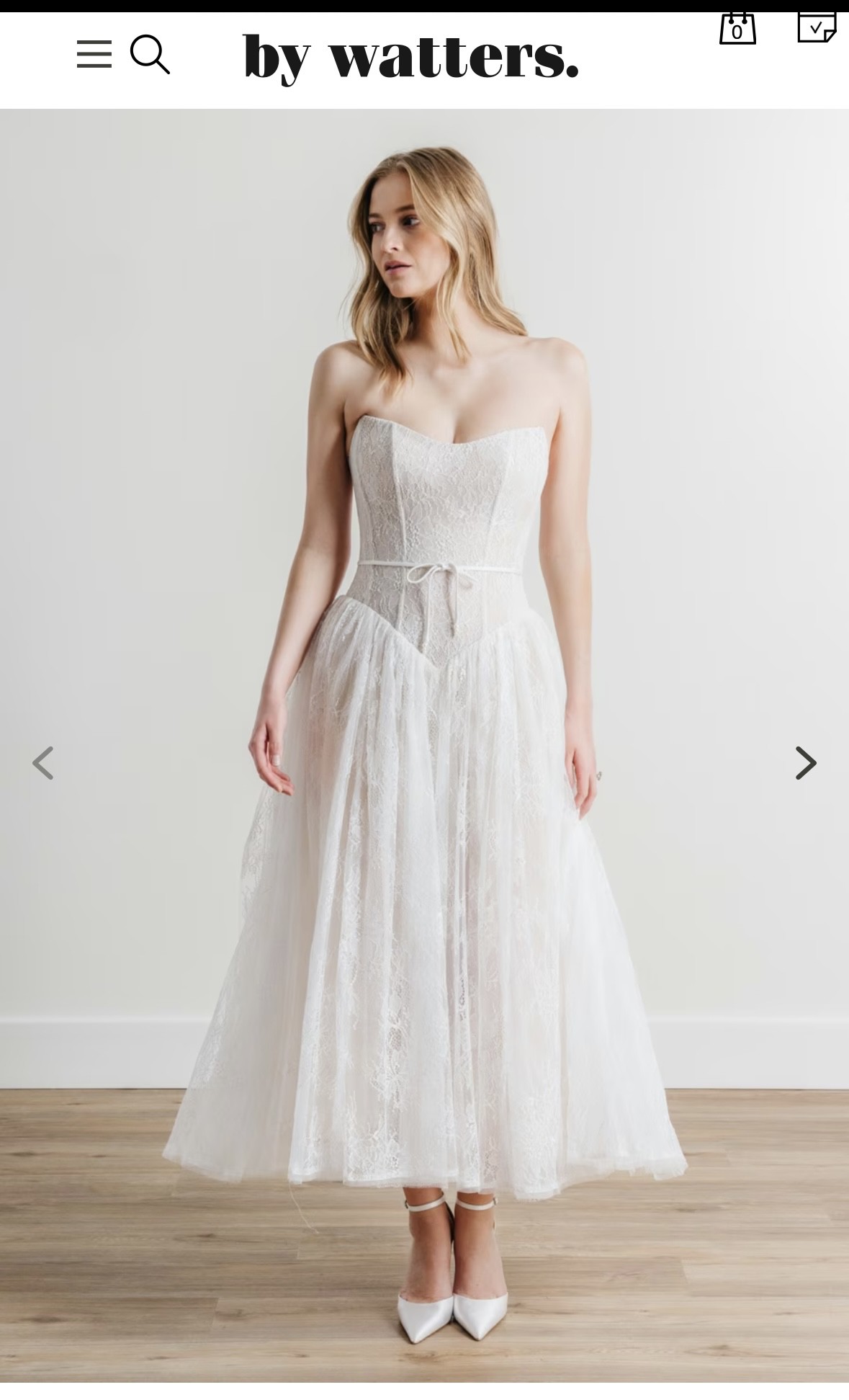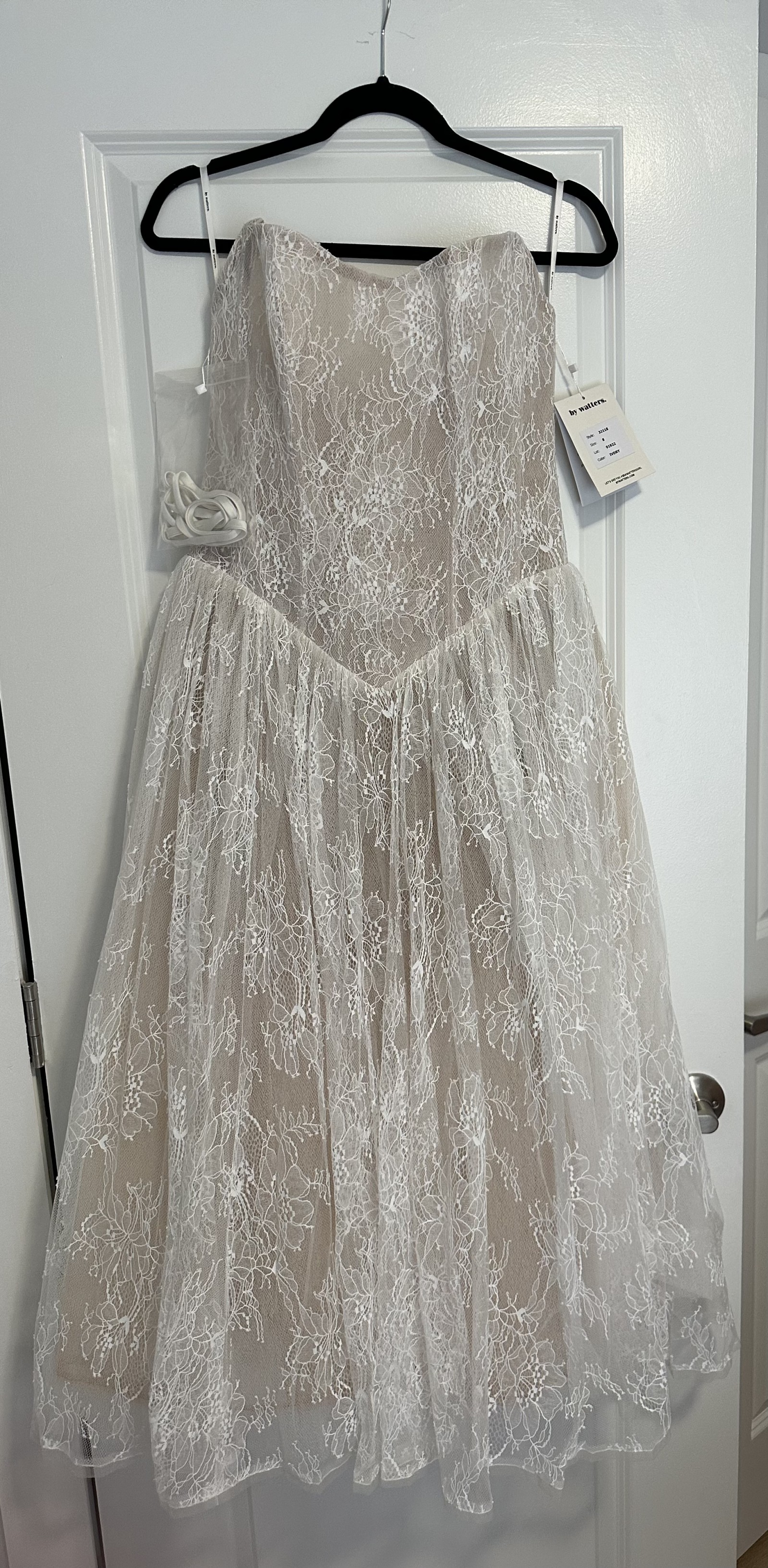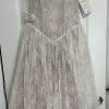 Anthropologie bridal dress! I’m 5’1 and it goes to my ankles. If you’re taller it will be a tea length dress. Perfect for courthouse wedding or rehearsal dinner!