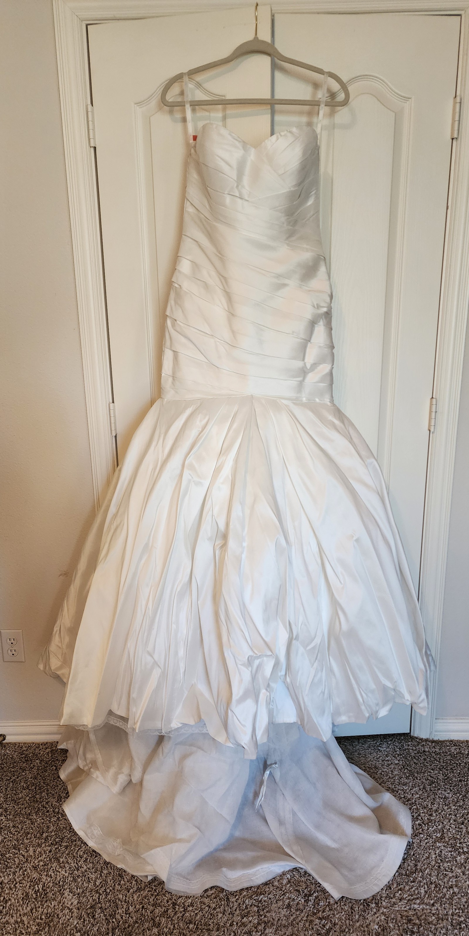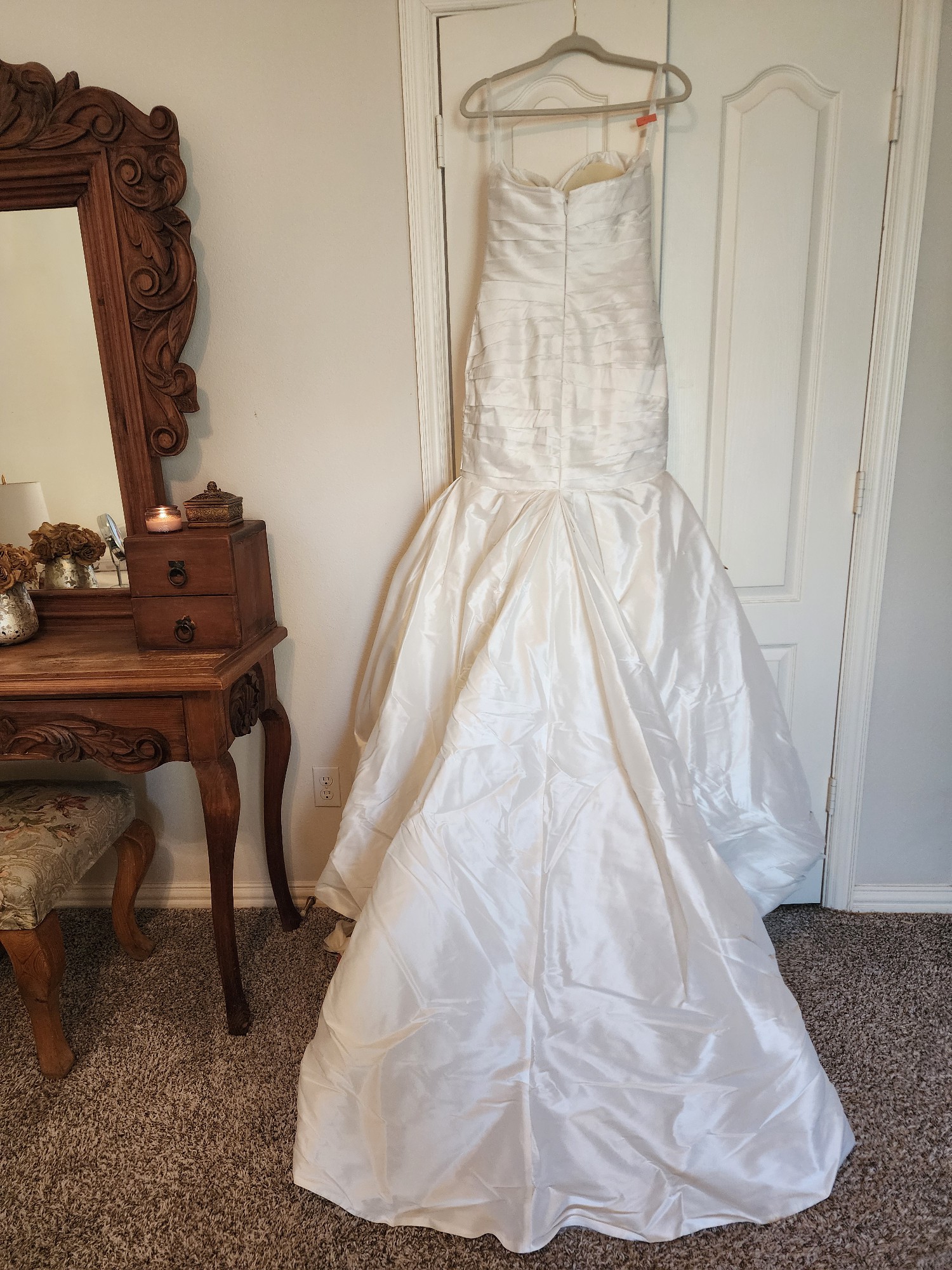 I wore this size 8 gown only once, and it is in impeccable condition, ready for its next adventure. If you're searching for a dress that captures beauty and sophistication, this is the one. I hope you can create as many wonderful memories in this dress as I did. Reach out if you want to know more!